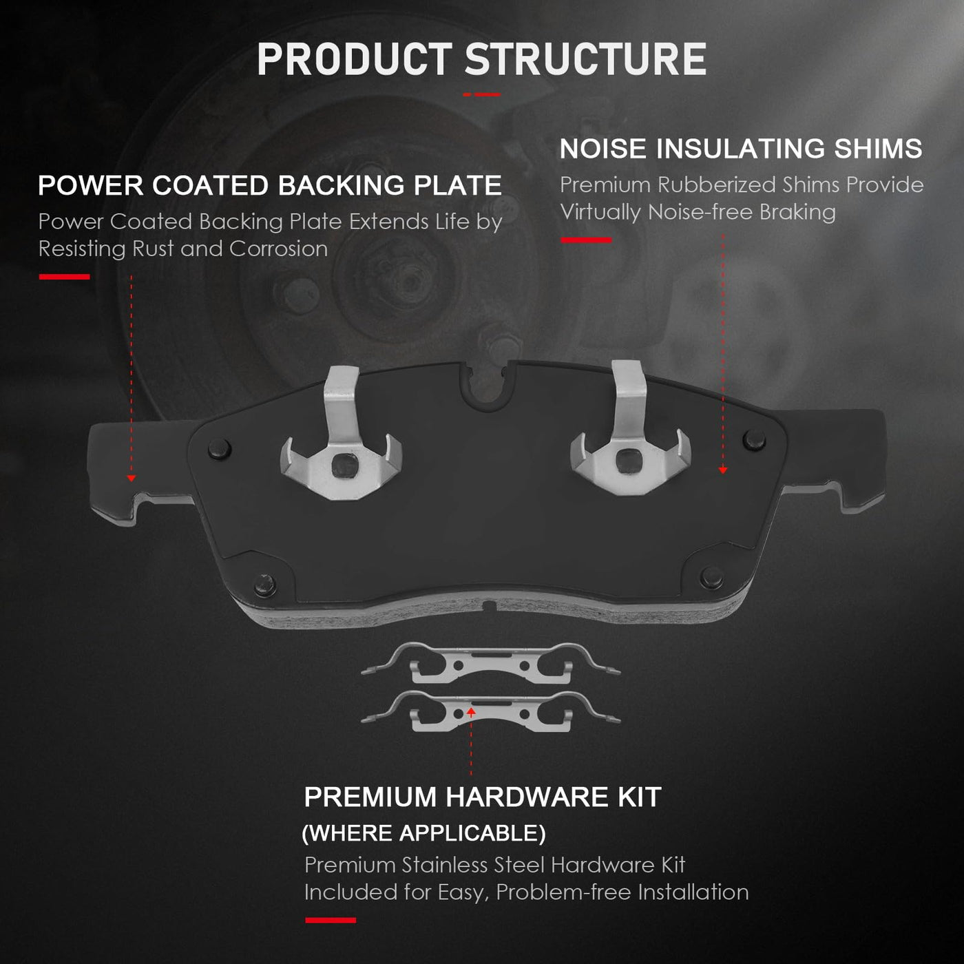 Cciyu D1629 D1498 Front & Rear Professional Ceramic Brake Pads Set Fit For 2017-2018 For Dodge For Durango,2017-2019 For Jeep Gr