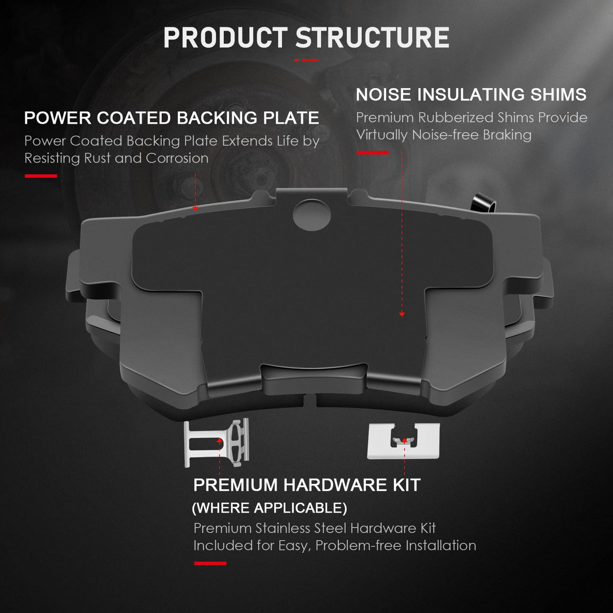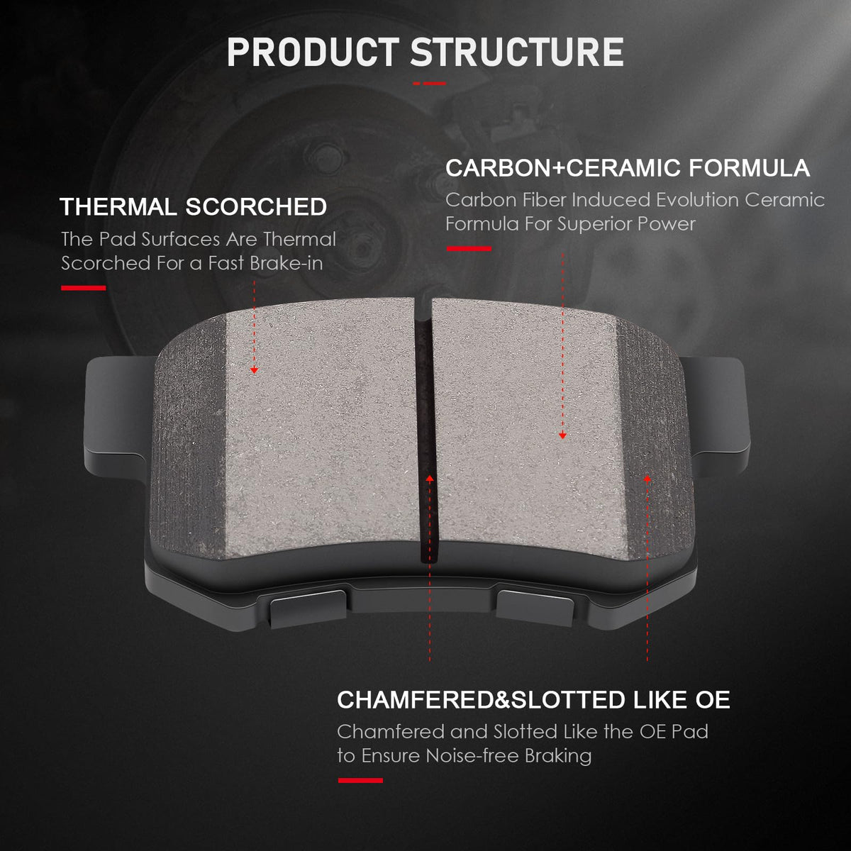 Cciyu D536 4Pcs Rear Ceramic Brake Pads Kits 2001-2003 For Acura Cl,2007-2012 For Acura Rdx,1996-2004 For Acura Rl,1999-2008 For