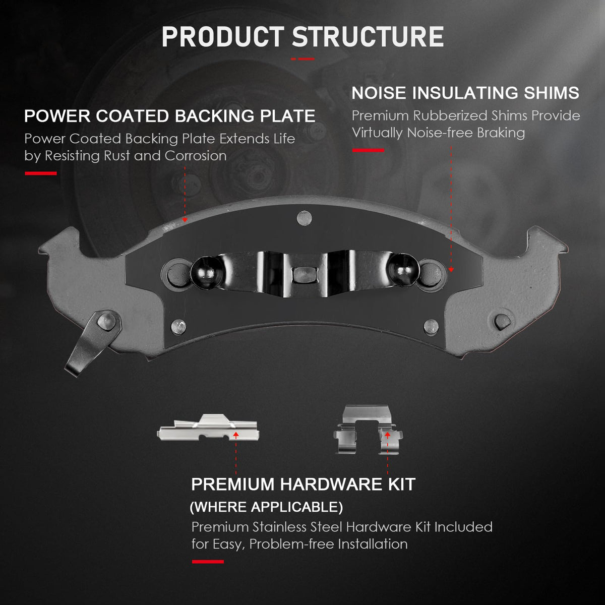 Cciyu D714/D623 Front & Rear Ceramic Disc Brake Pads Kit For Buick Riviera 95-96, Cadillac (Deville, Eldorado, Seville) 94-96, O