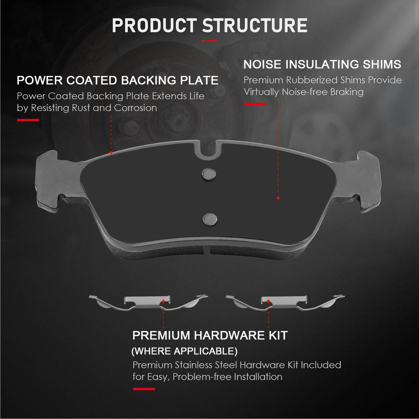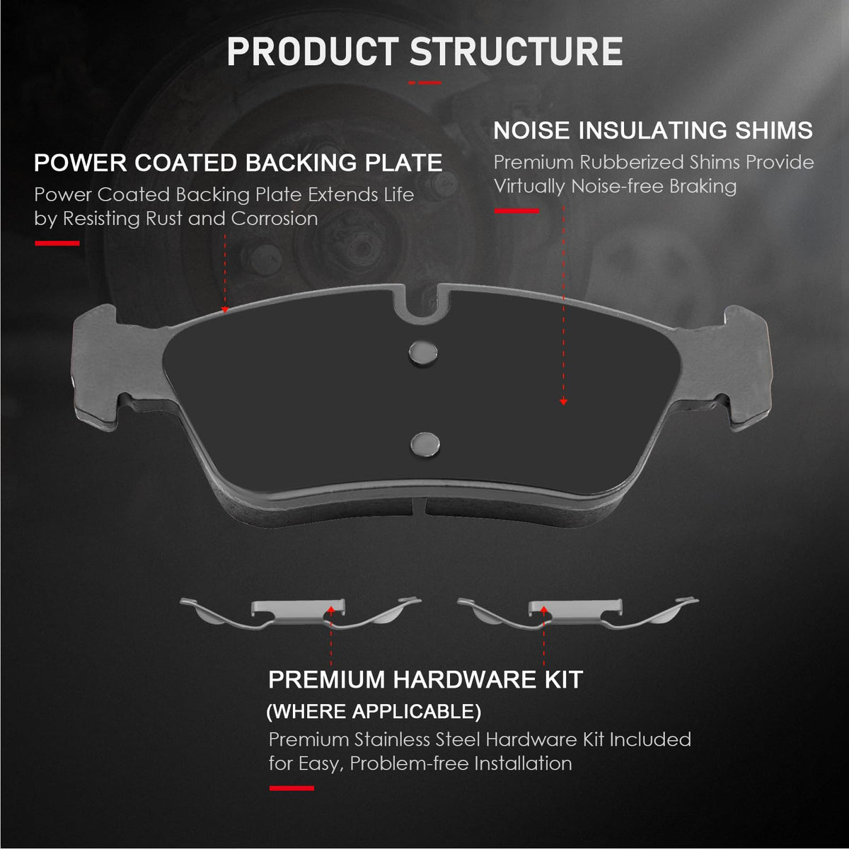 Fitment:2000 For BMW 323Ci ALL TYPES2000 For BMW 323Ci Convertible, Location : Front Driver And Passenger Side1998-2000 For BMW 323i Location : Front Driver And Passenger Side1998-1999 For BMW 323is Location : Front Driver And Passenger Side2006 For BMW 325Ci Coupe, mfrbodycodename : E46, Location : Front Driver And Passenger Side2001-2005 For BMW 325Ci Location : Front Driver And Passenger Side2006 For BMW 325Ci RWD, Location : Front Driver And Passenger Side1994 For BMW 325i Fr 12/94, Location : Front Driver And Passenger Side2001-2005 For BMW 325i Location : Front Driver And Passenger Side1992 1993 1995 For BMW 325i mfrbodycodename : E36, Location : Front Driver And Passenger Side1994 For BMW 325is Fr 12/94, Location : Front Driver And Passenger Side1992 1993 1995 For BMW 325is Location : Front Driver And Passenger Side2001-2005 For BMW 325xi Location : Front Driver And Passenger Side2000 For BMW 328Ci Location : Front Driver And Passenger Side1996 For BMW 328i Location : Front Driver And Passenger Side1997-1998 For BMW 328i mfrbodycodename : E36, Location : Front Driver And Passenger Side1999-2000 For BMW 328i mfrbodycodename : E46, Location : Front Driver And Passenger Side1996-1999 For BMW 328is Location : Front Driver And Passenger Side1998 For BMW Z3 2.8L1999-2002 For BMW Z3 ALL TYPES1996-2002 For BMW Z3 Location : Front Driver And Passenger Side2003-2008 For BMW Z4 Location : Front Driver And Passenger SidePackage Including:4 Ceramic Brake Pads