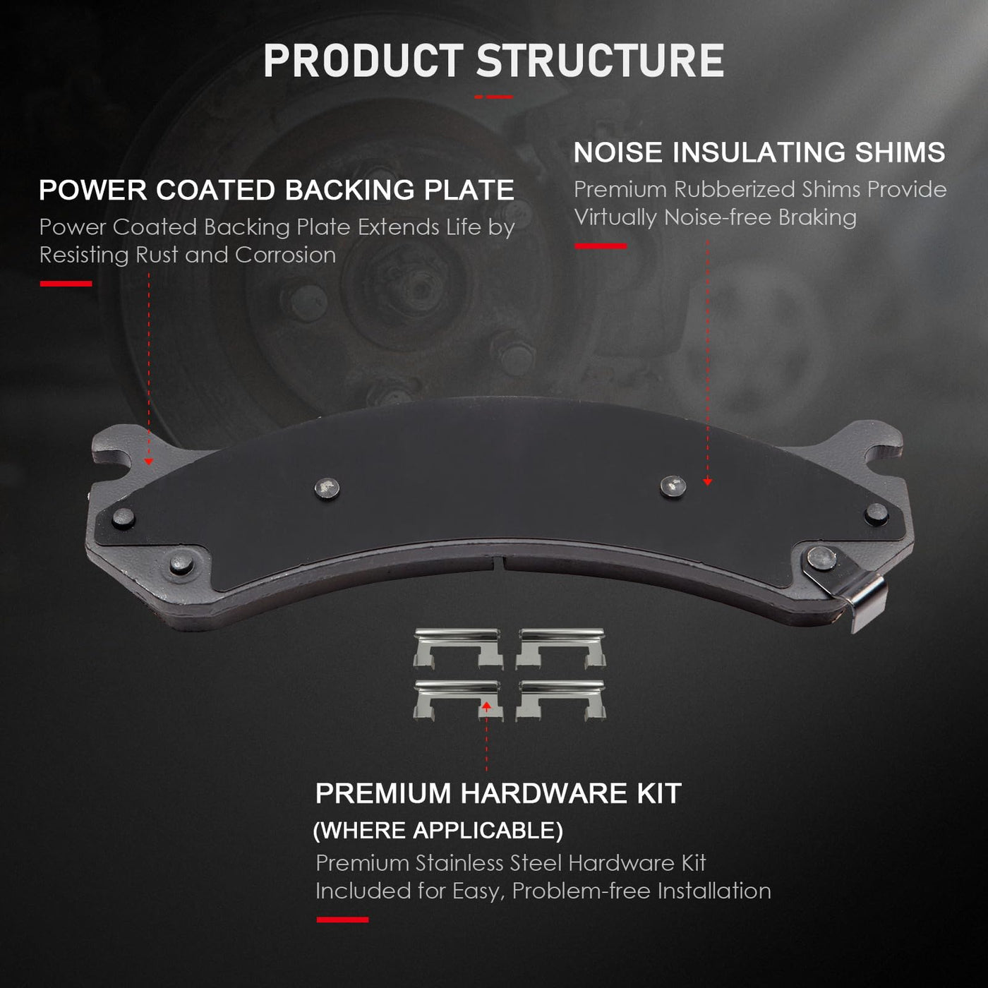 Cciyu D784 D785 Front & Rear Semi-Metallic Disc Brake Pads Kit For Chevrolet Silverado 1500 Silverado 1500 Hd For Gmc Sierra 150