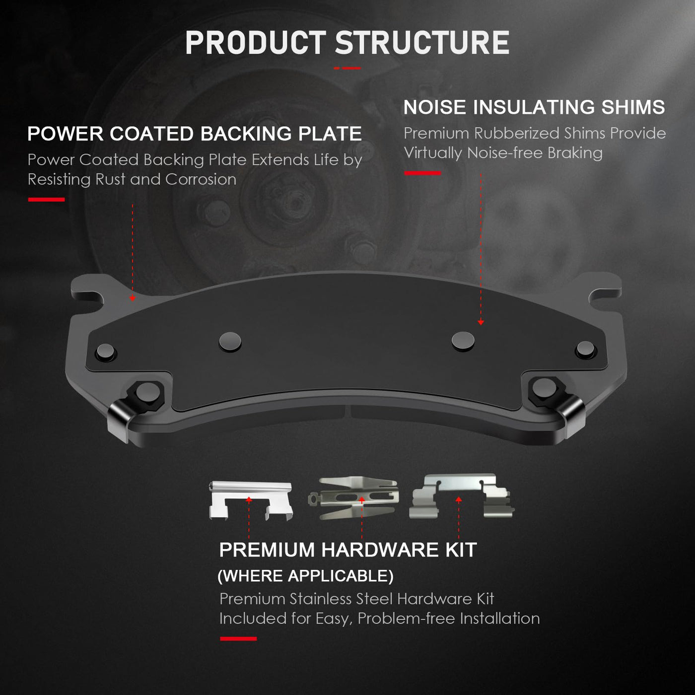 Cciyu D785 D834 Ceramic Front Rear Brake Pad Set Fit For Cadillac Escalade,Escalade Esv,Escalade Ext,For Chevy Avalanche 1500,Si