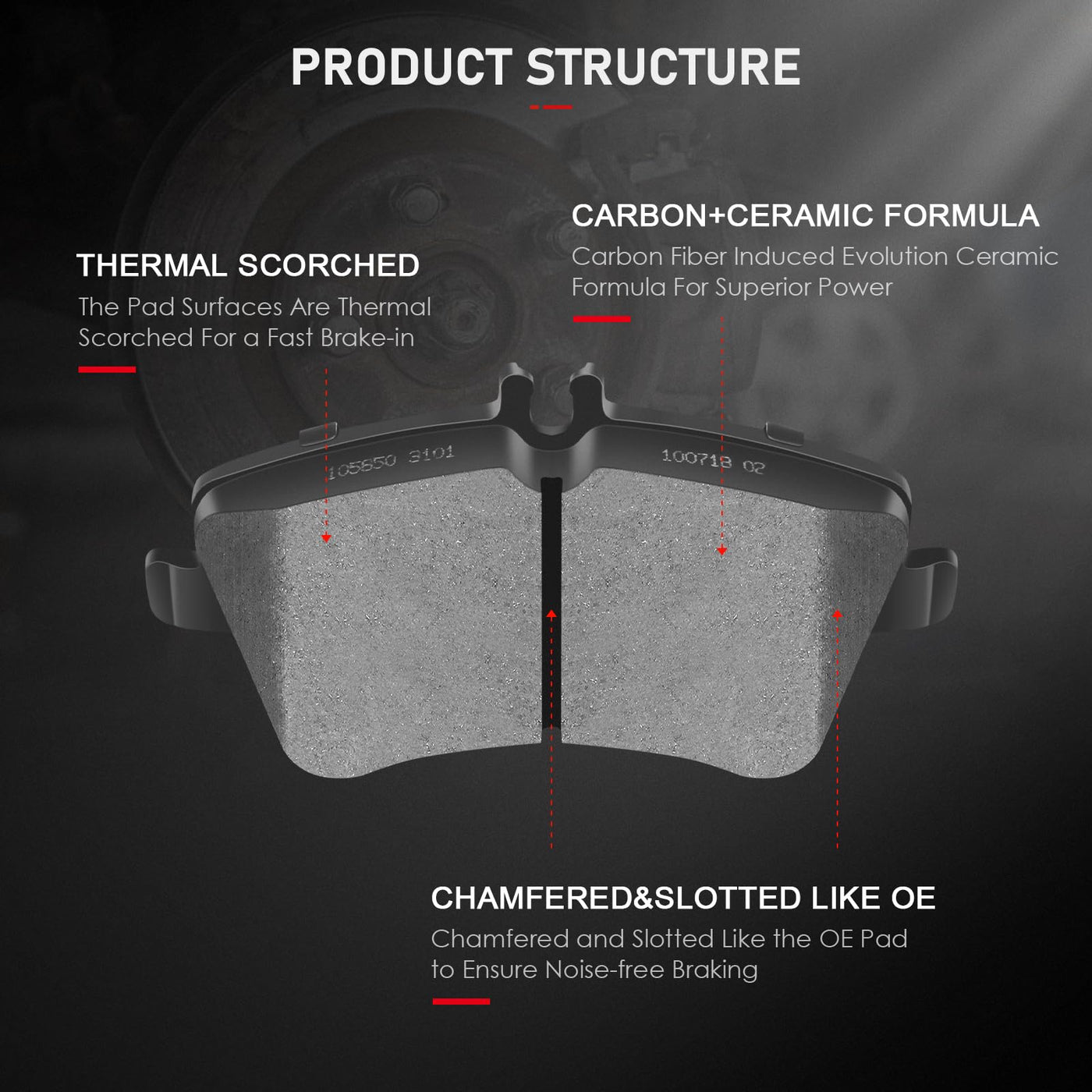 Cciyu D872 D779 Front Rear Ceramic Brake Pads Kits 8Pcs Fit For 2002-2005 For Mercedes-Benz C230,2001-2005 For Mercedes-Benz C24