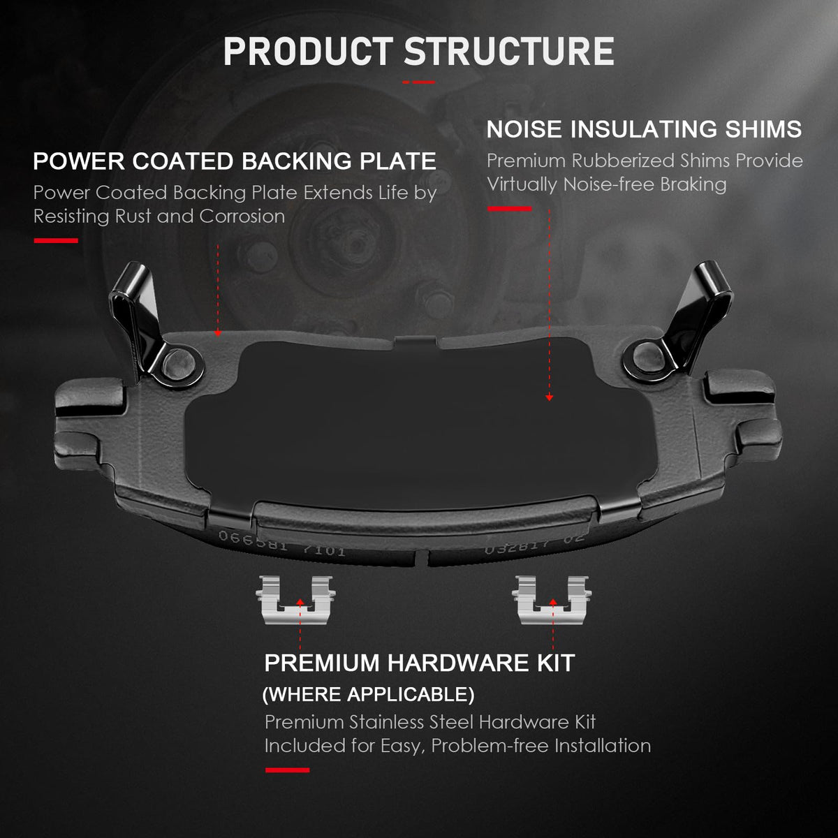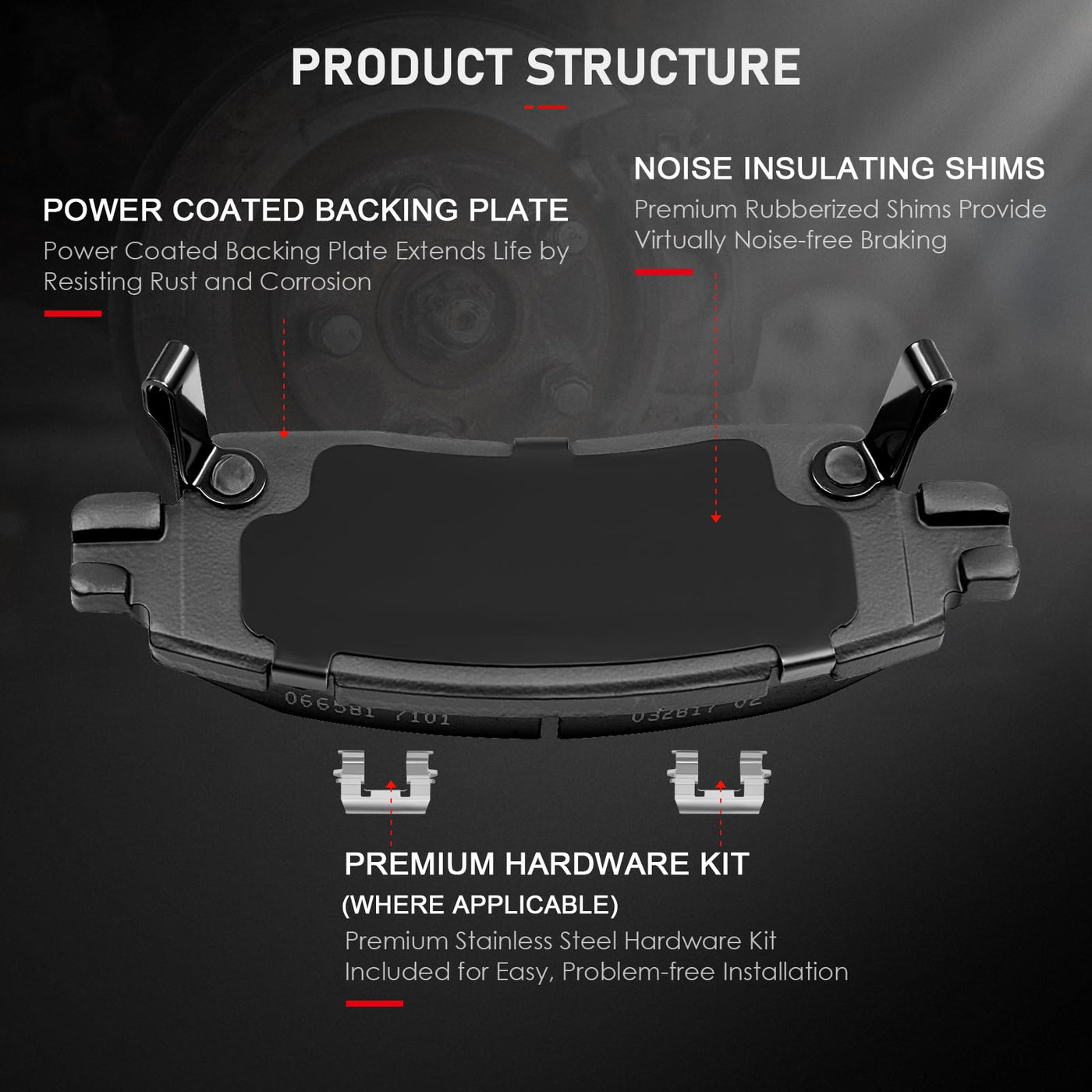 Cciyu D883 4Pcs Rear Ceramic Brake Pads Kits 2008-2017 For Buick,2013-2017 For Cadillac,2002-2017 For Chevrolet,2007-2016 For Gm