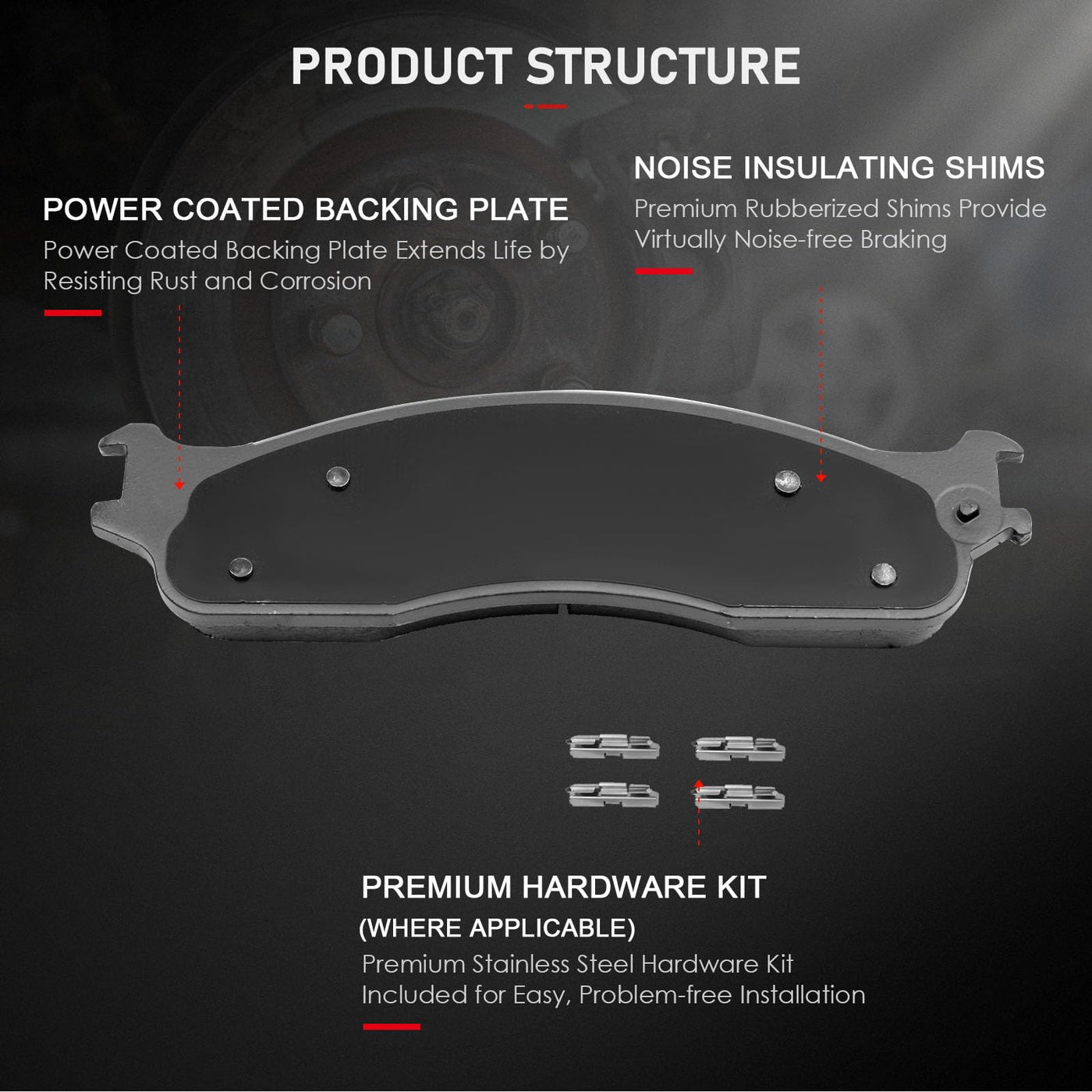 Cciyu D965 Front Semi-Metallic Disc Brake Pads Kit For Dodge Ram 1500 2006-2008,For Dodge Ram 2500 2003-2008,For Dodge Ram 3500