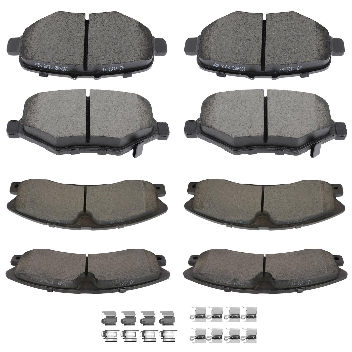 Q: How many brake pads are included in the SCITOO kit?A: The SCITOO Ceramic Brake Pads kit includes a total of 8 thermoQuiet brake pads, providing a complete set for installation on compatible vehicles.