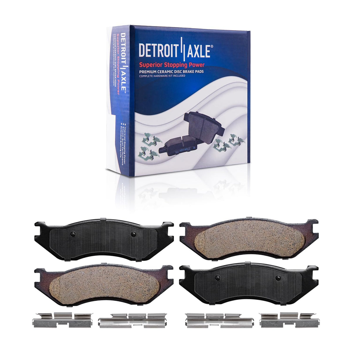 Kit Includes: 2x Front Drilled & Slotted Disc Brake Rotors: S-53005 2x Rear Drilled & Slotted Disc Brake Rotors: S-53006 2x Front Ceramic Brake Pads (Hardware Included): P-966 2x Rear Ceramic Brake Pads (Hardware Included): P-898 1x 10oz Brake Cleaner Spray & 1x 12oz Brake Fluid Bottle Fitment: with 13.23 inch (336mm) Front Rotor Replacement for 2004-2006 Dodge Durango Replacement for 2002-2005 Dodge Ram 1500 (5-Lug; Models Excluding SRT-10) Introduction: Detroit Axle is a leading global retailer and distributor of OE re-manufactured and new aftermarket auto parts. We are committed to providing first-class products and outstanding customer service at an incredible value. Our rapidly-expanding product line includes CV Axles, Wheel Hub & Bearings, Suspension & Chassis parts, Complete Strut Assemblies, Shock Absorbers, Drilled & Slotted Brake Rotors, Conventional Brake Rotors, Ceramic Brake Pads, Brake Fluids, Brake Cleaners, Rack & Pinion Assemblies, Gearboxes, Drive Shafts, Transmissions, and more. With over 30 years of experience, we are proud that millions of customers around the world rely on Detroit Axle parts. We have two Metro Detroit storefront locations on the north and west sides of the city. Our flagship location, in the heart of Detroits 8 Mile Road, is a combined retail storefront and over 180,000 square feet of the warehouse that serves as our global distribution center.