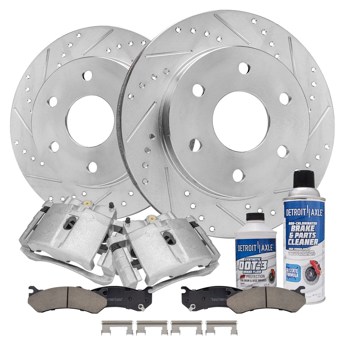 Detroit Axle - Front 8pc Brake Kit for Chevy Silverado GMC Sierra Savana Express Yukon XL 1500 Escalade ESV EXT, Drilled Slotted
