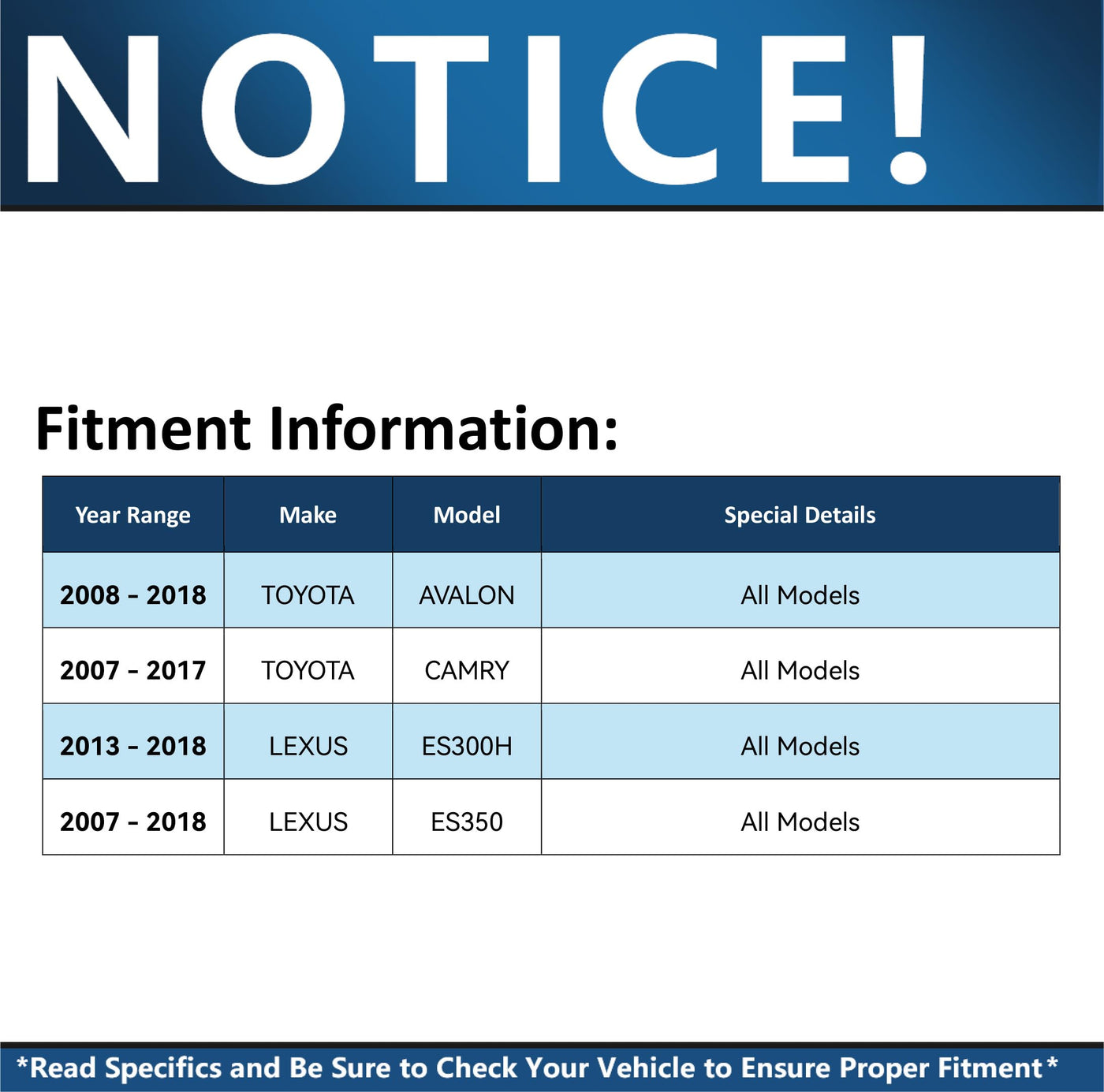 Detroit Axle - Front Brake Kit For Toyota Camry Avalon Lexus Es350 Es300H Drilled & Slotted Brake Rotors Ceramic Brakes Pads Rep