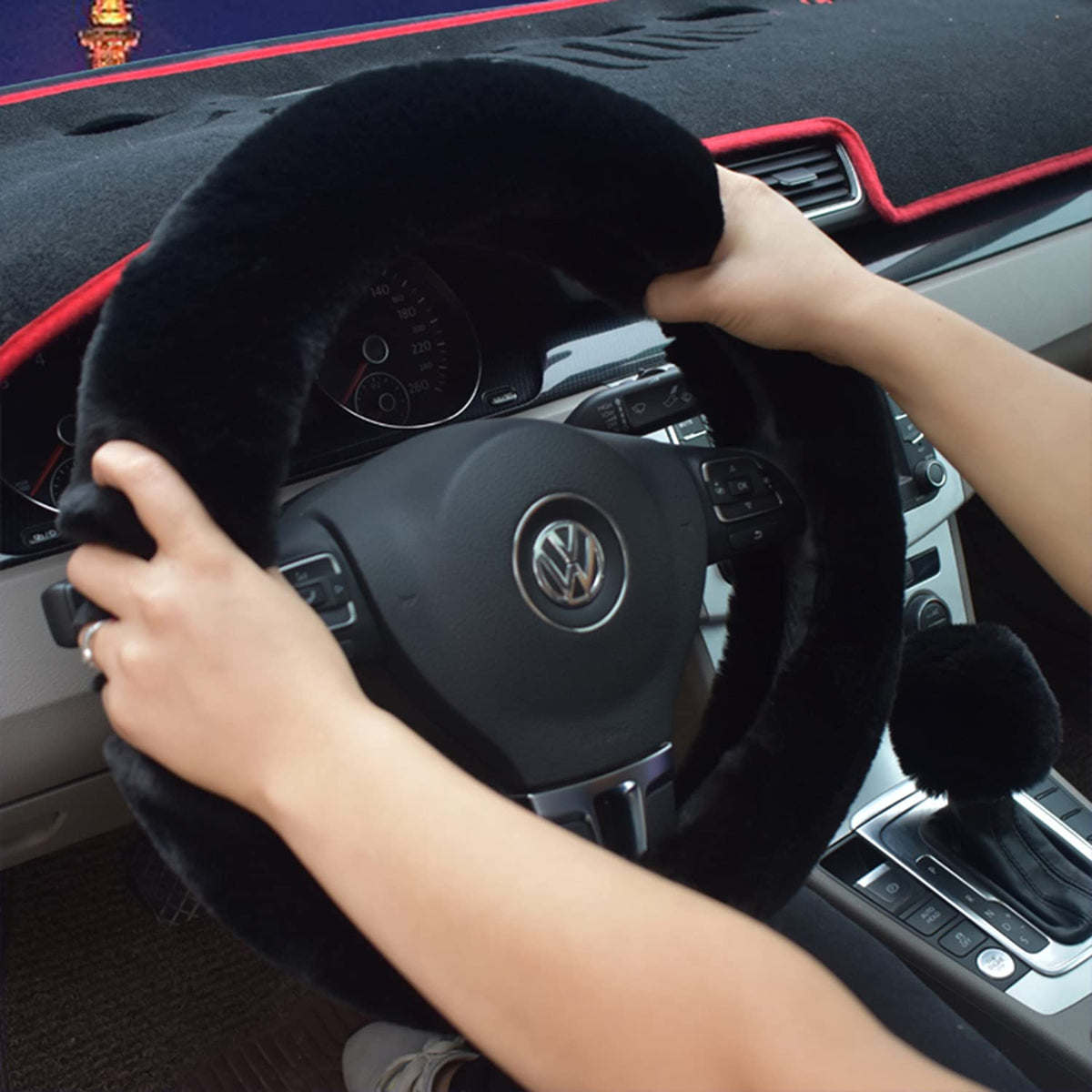 Genuine Australia Sheepskin Pure Wool Auto Steering Wheel Cover 1100% Authentic Sheepskin Australia Wool Our Fuzzy Steering Wheel Cover Is Made Of Real Sheepskin,High Density Natural Australia Wool, Luxurious, Fluffy And Smooth,Very Soft And Comfortable Feel, Also It Will Not Shed, You Can Use It All Year Round 2All-Weather Cold Winter Or Hot Summer Authentic Sheepskin Steering Wheel Cover Is Breathable, Whether It Is Cold Winter Or Hot Summerit Is Super Soft On The Hands And Helps Deal With A Hot Steering Wheel In The Summer And A Cold One In The Winterkeeps Your Hands Super Warm Even In Very Cold Weather, And Doesnt Get Super Hot Even Though Its Summer Time 3Stretchy Steering Wheel Cover Great Grip Anti-Slip The Cover Is Stretchy,So It Is Universal For The Steering Wheel Cover Diameter In 36-38 Cm 15 Inchit Also Massages With Its Thicker, Softer, More Comfortable Feel Providing A More Secure Performance In Terms Of Grip For Your Steering Wheel,Grips Steering Wheel Well, And Does Not Slide Around 4Easy To Install Our Sheepskin Stretch-On Steering Wheel Cover Requires No Installation At All, Simply Slip It Right On To Your Steering Wheel, We Believe You Can Do It Wellpackage: 1 Set Of 3 Pcs1 * Sheepskin Steering Wheel Cover1 * Gear Shift Cover1 * Handbrake Cover Note:Due To Your Monitor Setting And The Shooting Light,It May Has Some Color Difference From The Real Item All Dimensions Are Measured By Hand, There May Be A Little Deviations If You Mind,Please Do Not Purchase Itthanks