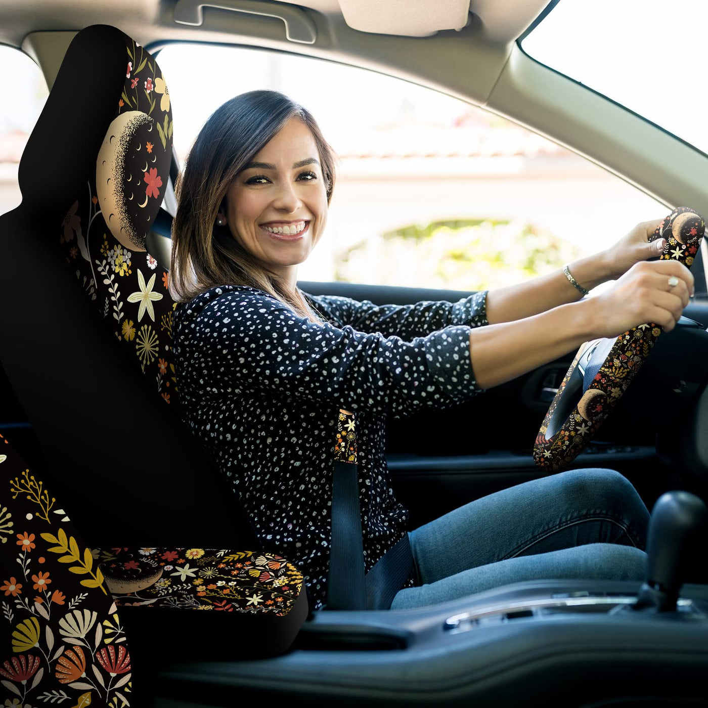 Fiada 15 Pcs Car Seat Covers Full Set Car Accessories Set Steering Wheel Cover Armrest Handbrake Gear Shift Knob Headrest Access
