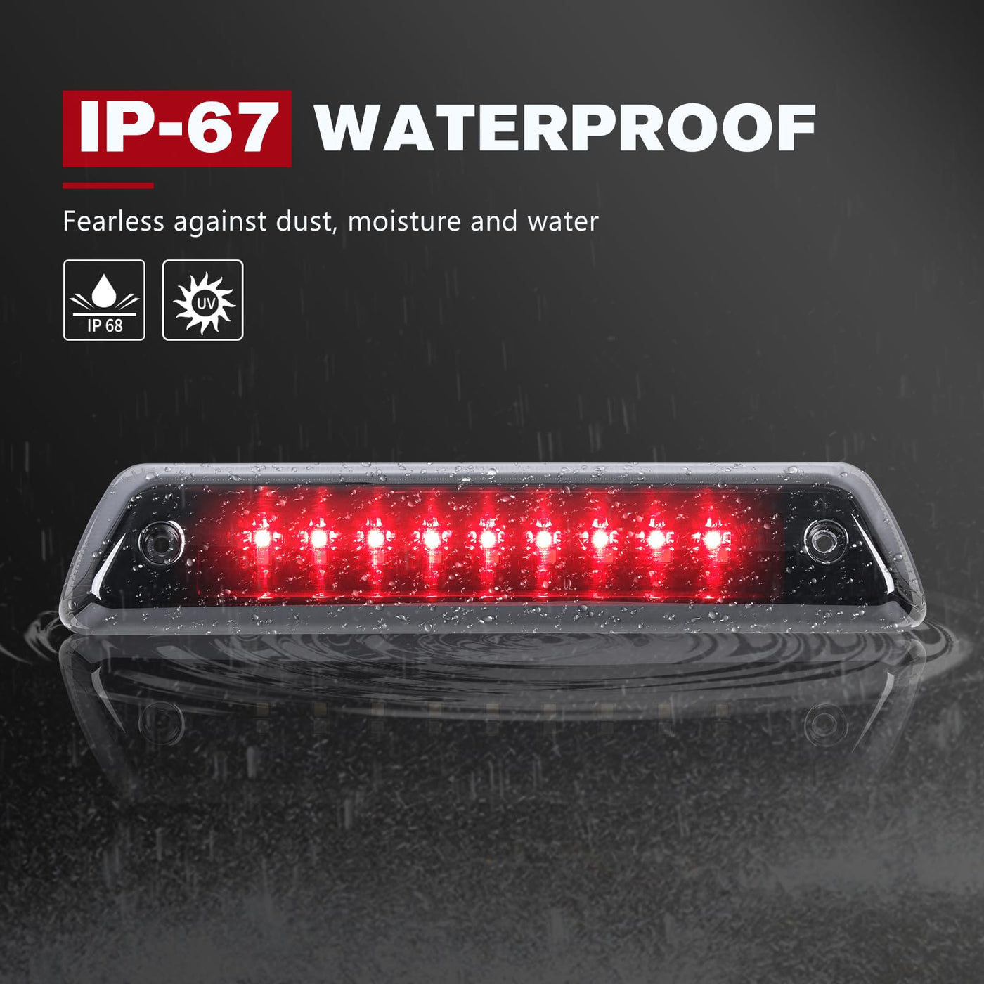 Q: What is the waterproof rating of the FIERYRED Third Brake Light?A: This third brake light has an IP67 waterproof rating, ensuring it can withstand exposure to water and various weather conditions.