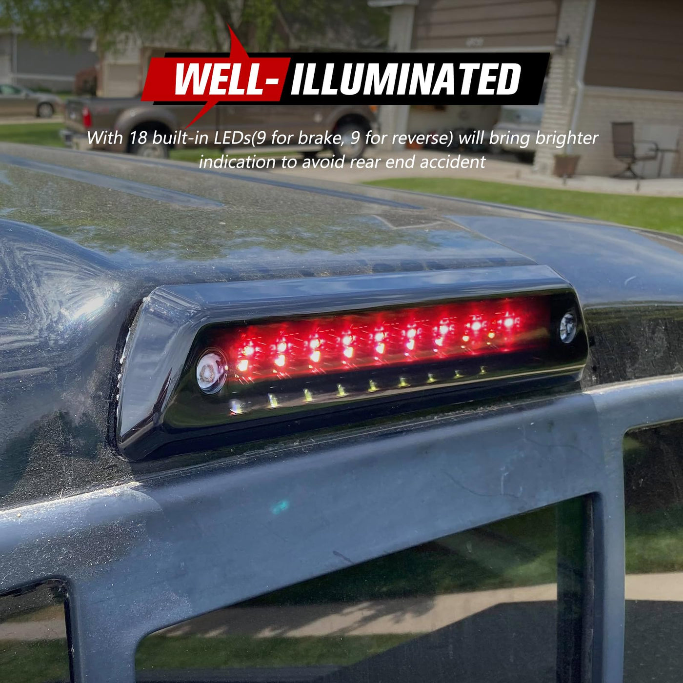 Fieryred Third Brake Light/Reverse Light Smoked Compatible With 2009-2014 Ford F150 Light,Rear Cab Light,3Rd Lights Power Saving