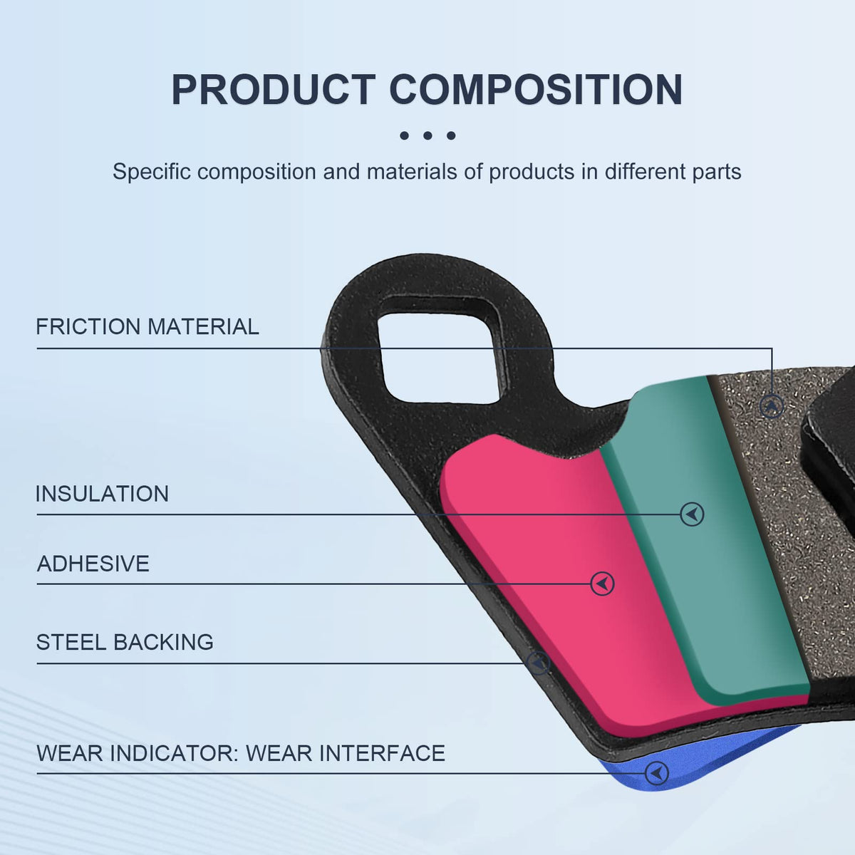 Q: What materials are these brake pads made from?A: The brake pads are made from high-quality metal materials, featuring a semi-metallic composition that provides excellent heat resistance and durability. This construction enhances their braking performance and longevity, ensuring a reliable stopping power under various conditions.