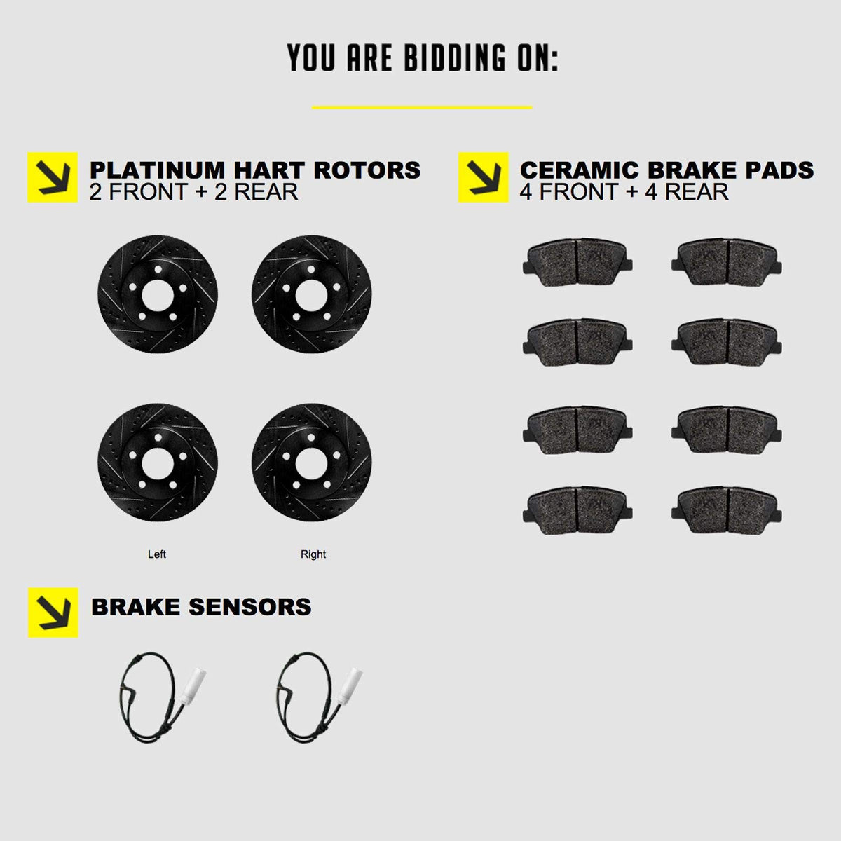 KIT INCLUDES 4 CERAMIC BRAKE PADS AND 2 PERFORMANCE BRAKE ROTORS - This brake kit includes everything you need for a complete brake job. | LESS HEAT LONGER BRAKE LIFE - Hart Brakes drilled rotor will vent hot gasses from the pad surface, reducing heat transfer between the pad and rotor. This allows your brakes to stay cooler under extreme conditions without sacrificing performance. | REDUCE YOUR STOPPING DISTANCE - Slots create a stronger pad bite, reducing your stopping distance providing you best in class braking power. | Quiet Braking - Hart Brakes pads are designed to reduce noise and vibration. The brake pads are shimmed to eliminate noise and absorb vibration, giving you a smoother and quieter ride. | EASY INSTALLATION: Hart Brake Kits come complete with all the necessary hardware for a hassle free installation.