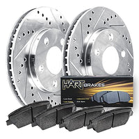 KIT INCLUDES 4 CERAMIC BRAKE PADS AND 2 PERFORMANCE BRAKE ROTORS - This brake kit includes everything you need for a complete brake job. | LESS HEAT LONGER BRAKE LIFE - Hart Brakes drilled rotor will vent hot gasses from the pad surface, reducing heat transfer between the pad and rotor. This allows your brakes to stay cooler under extreme conditions without sacrificing performance. | REDUCE YOUR STOPPING DISTANCE - Slots create a stronger pad bite, reducing your stopping distance providing you best in class braking power. | Quiet Braking - Hart Brakes pads are designed to reduce noise and vibration. The brake pads are shimmed to eliminate noise and absorb vibration, giving you a smoother and quieter ride. | EASY INSTALLATION: Hart Brake Kits come complete with all the necessary hardware for a hassle free installation.