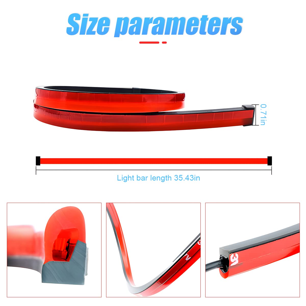 Q: Is the brake light strip compatible with all vehicles?A: Yes, the LED brake light strip is designed for use with most 12V vehicles, including cars, trucks, SUVs, RVs, and pickups. However, please confirm the size before purchasing, as it can be cut every 3 lamp beads if necessary.