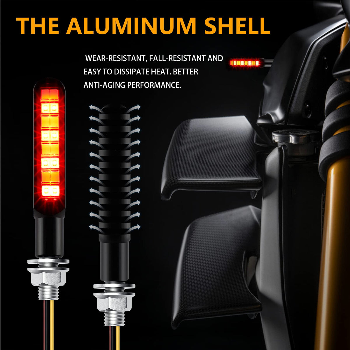 iFunyLED 2PCS Flowing LED Motorcycle Turn Signal Strobe Brake Tail Lights, Aluminum Alloy 12V Super Bright Motorbike Front Rear