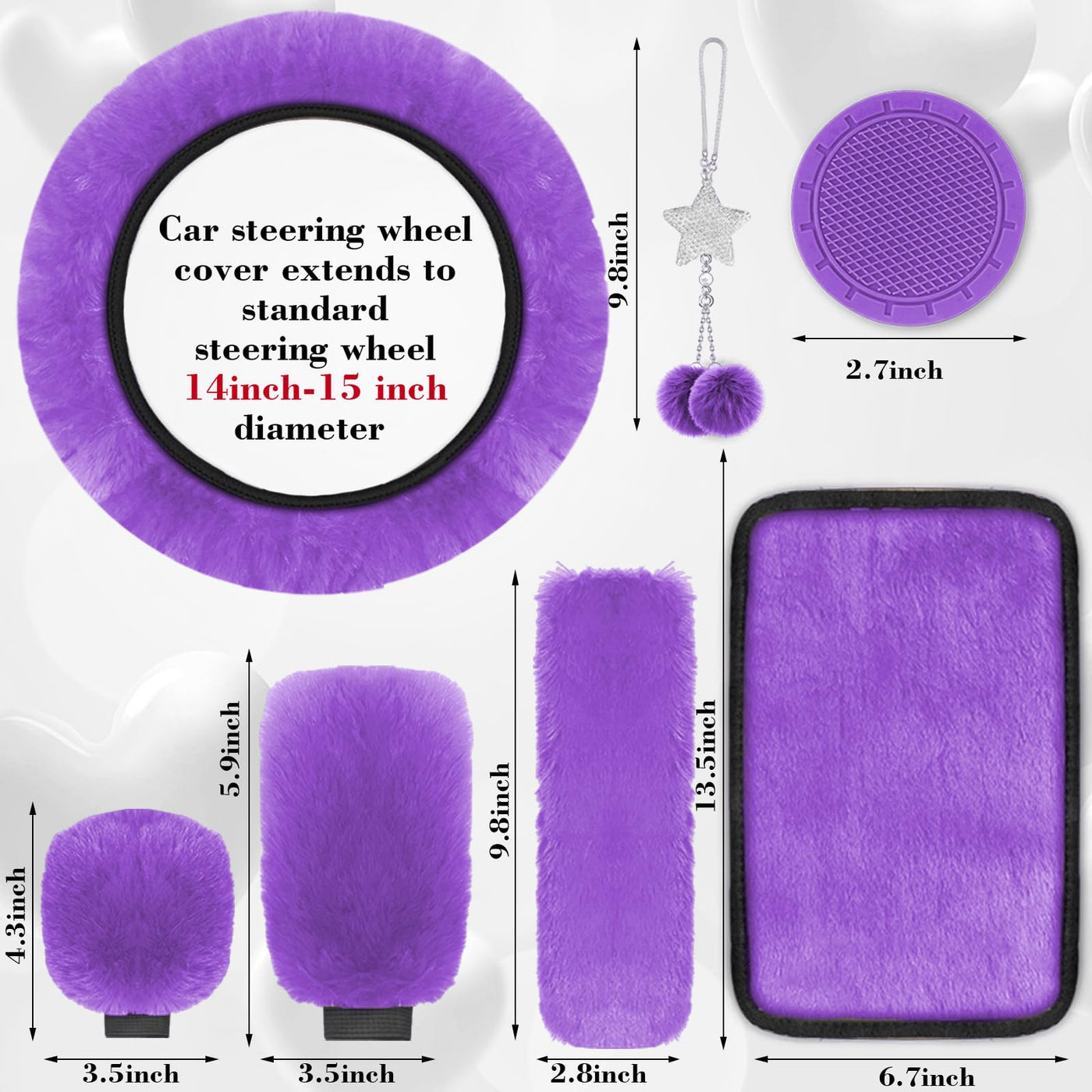 [Careful matching]:After careful matching,you will receive a set of car decoration accessories,including: 2 front seat covers, 2 backrest covers,1 rear backrest cover,1 rear bottom bench cover,5 independent headrest covers,steering wheel cover+armrest cushion+handbrake cover+gear shift cover+safety belt cover * 2 (plush)+coaster * 2 (non drilled silicone coaster)+plush pendant+one button start * 2 | [Fashion design]: The seat cover adopts sports design with rich and colors.It looks beautiful and feels really good when driving.Make your car seat look different.The surfaces of the steering wheel cover,handbrake cover,and gear shift cover are all made of plush design,which provides a soft and comfortable feel and won't feel too cold or overheated when touched.They can cover the original steering wheel,handbrake, and gear shift,making them clean and beautiful | [Unique design]:car seat cover breathable design with a built-in 2mm composite sponge.Make your car look different in a few minutes.The rest of the kit is made of fluffy and soft plush.Soft,delicate,and thick in feel,it warms your hands,absorbs sweat from your hands,enhances your driving experience,and gives you a comfortable touch and grip when driving. | [Universal Size] :Our fluffy car accessories are suitable for most cars,such as cars,SUVs, open cars and so on,you can learn from pictures carefully to see the detailed accessories, which are helpful for you to install.
