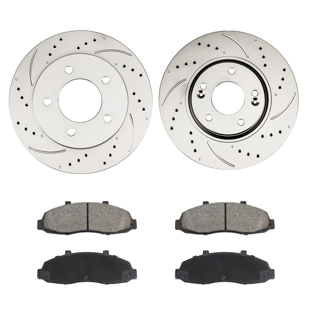 KAX Front Brake Kit, Drilled and Slotted Brake Rotors, Ceramic Brake Pads | Fits Ford F150 1997 1998 1999 2001 2002 2003, Automo