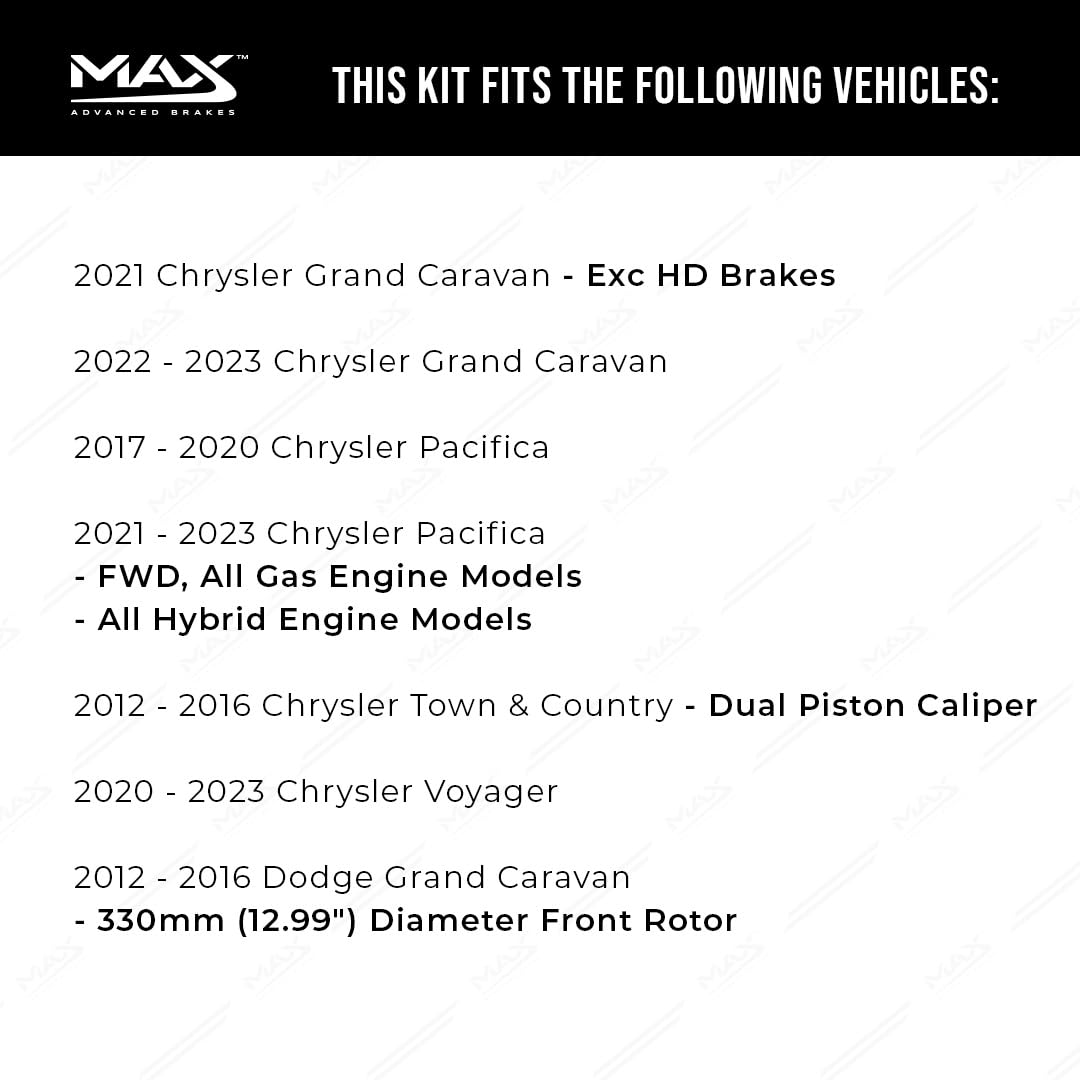 Max Advanced Brakes Front Brake Kit Compatible With 2012-2023 Chrysler Town & Country Pacifica W/Dual Piston Caliper Replacement