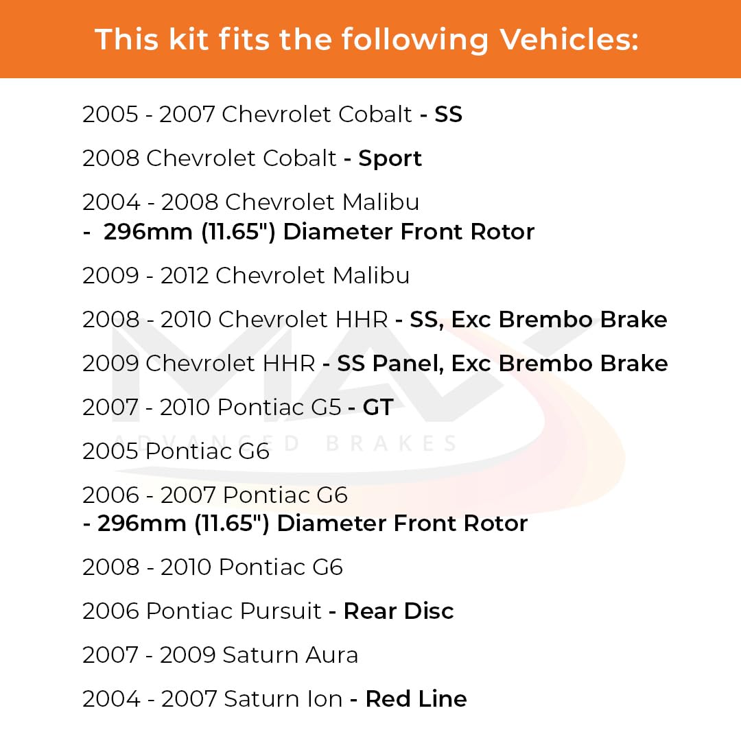 Max Advanced Brakes Front & Rear Brake Kit Compatible With 2005-2008 Chevy Cobalt Malibu Hhr W/11.65'' Dia Front Rotor Replaceme