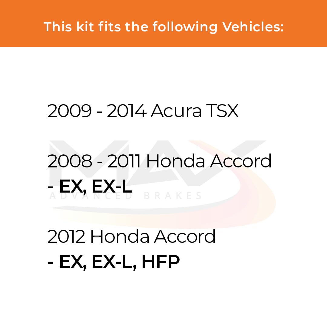 Max Advanced Brakes Front & Rear Brake Kit Compatible With 2008 2009 2010 2011 2012 Honda Accord Ex Ex-L Hfp Replacement Cross D