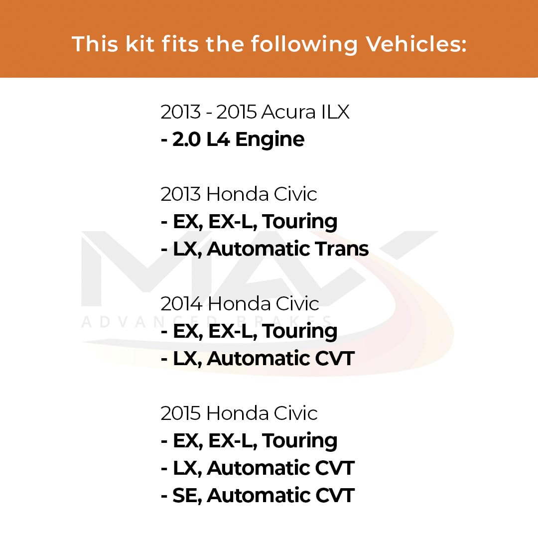 Max Advanced Brakes Front & Rear Brake Kit Compatible With 2013 2014 2015 Honda Civic Ex Ex-L Touring Lx Replacement Geomet Coat