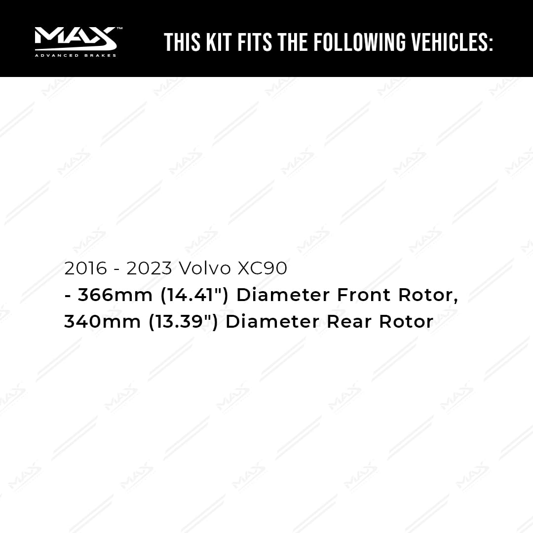 Max Advanced Brakes Front & Rear Brake Kit Compatible With 2016 2017-2023 Volvo Xc90 W/14.41'' Fr 13.39'' Dia Rr Rotor Replaceme