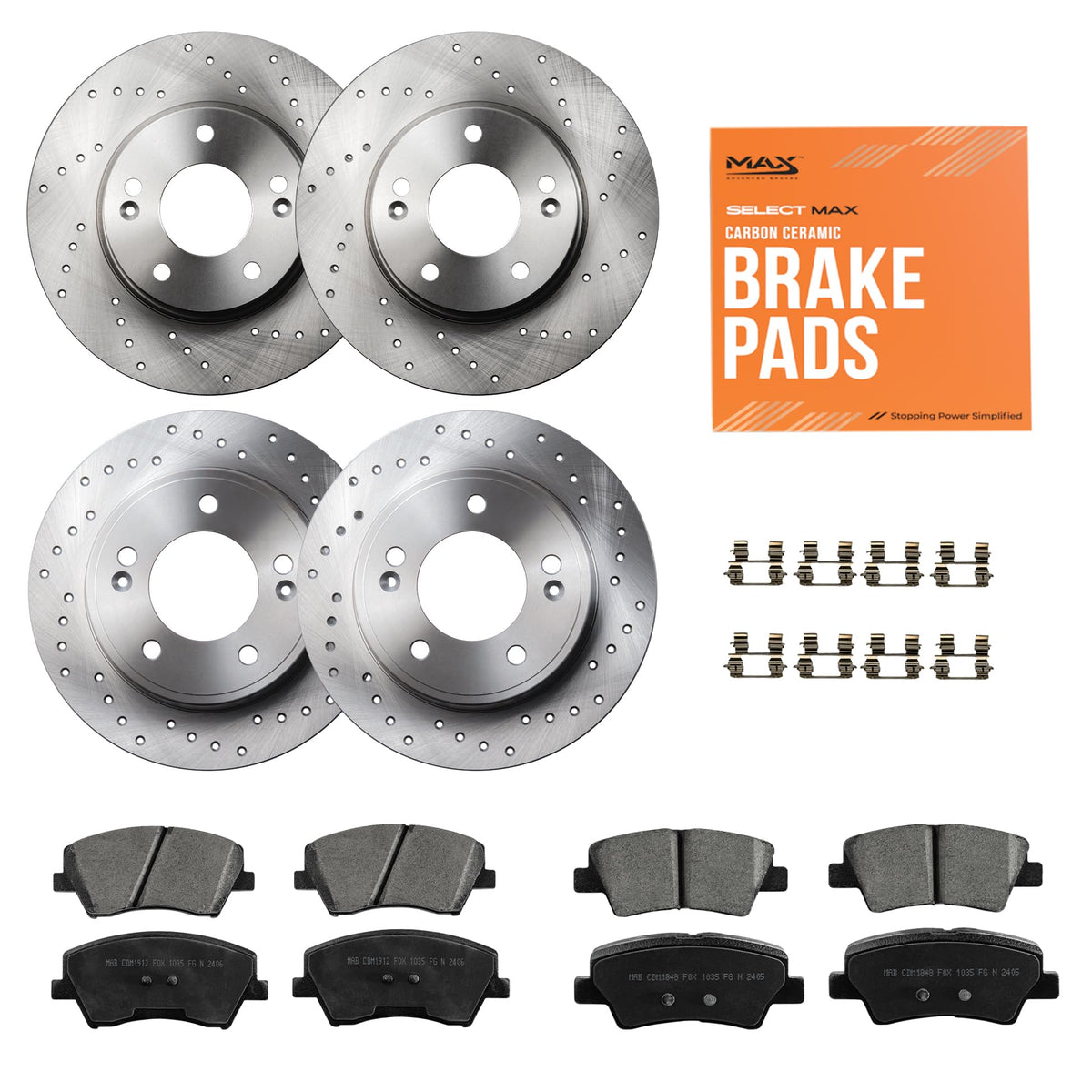 Max Advanced Brakes Front & Rear Brake Kit Compatible With 2017 2018 2019 2020 Hyundai Elantra Exc 1.6 L4 Engine Replacement Cro