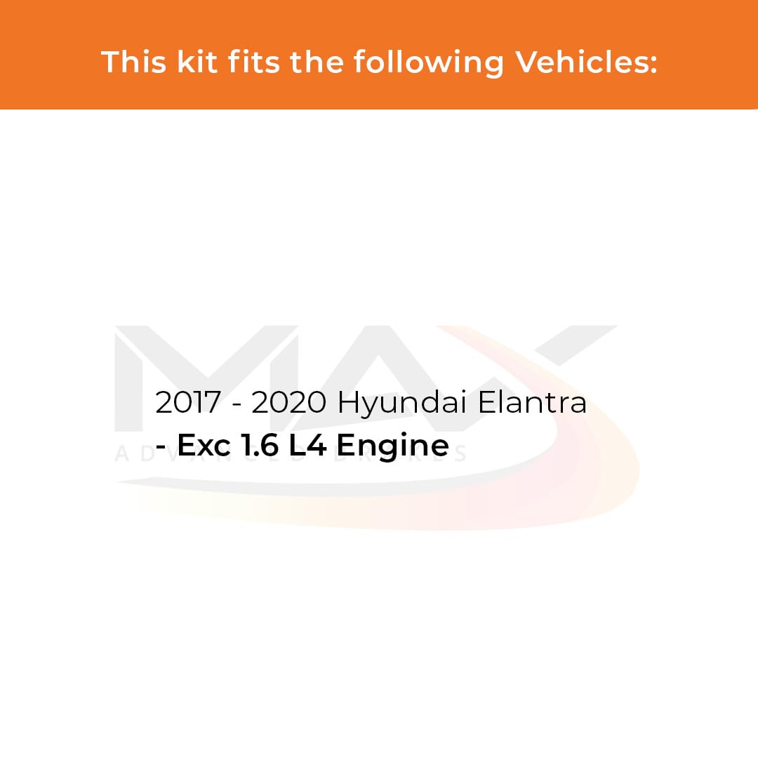 Q: What vehicles are compatible with the Max Advanced Brakes Front & Rear Brake Kit?A: The Max Advanced Brakes Front & Rear Brake Kit is specifically designed to be compatible with the 2017, 2018, 2019, and 2020 Hyundai Elantra, particularly those equipped with the Exc 1.6 L4 Engine.