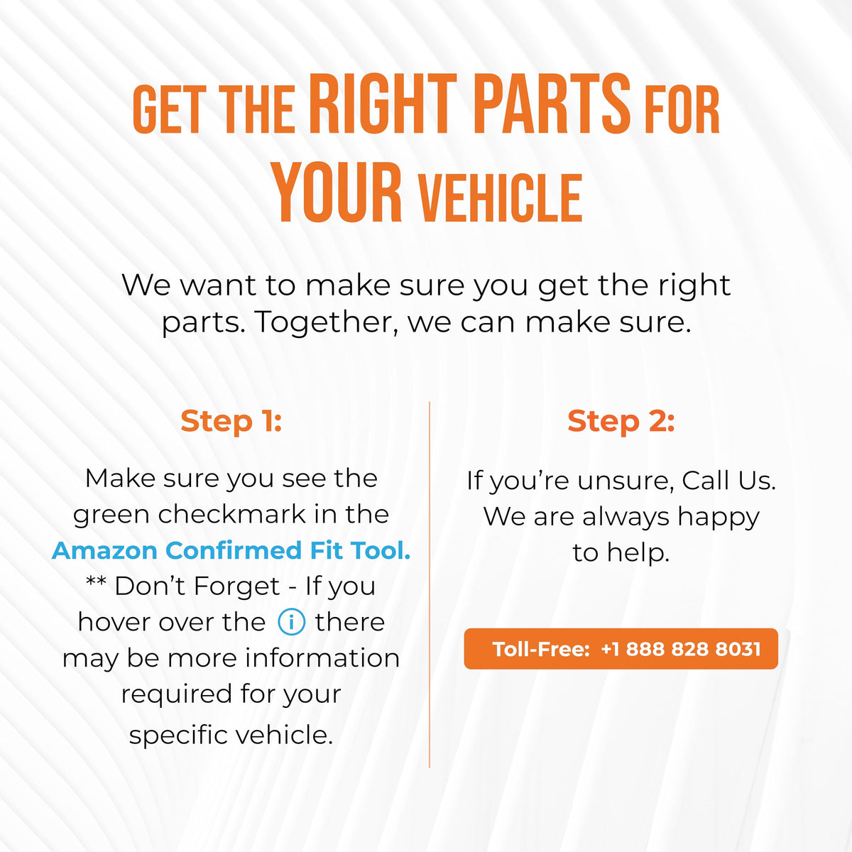 Q: How do I ensure proper fitment for my vehicle?A: To guarantee a 100% fitment, verify your vehicle's specifications before ordering. Key details include Year, Model, Sub-Model, Engine Size, 2WD/4WD, AT/MT, and VIN#. For mobile users, switch to the Full Site and use the PartFinder Tool for accurate confirmation.