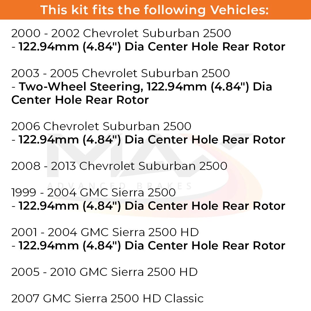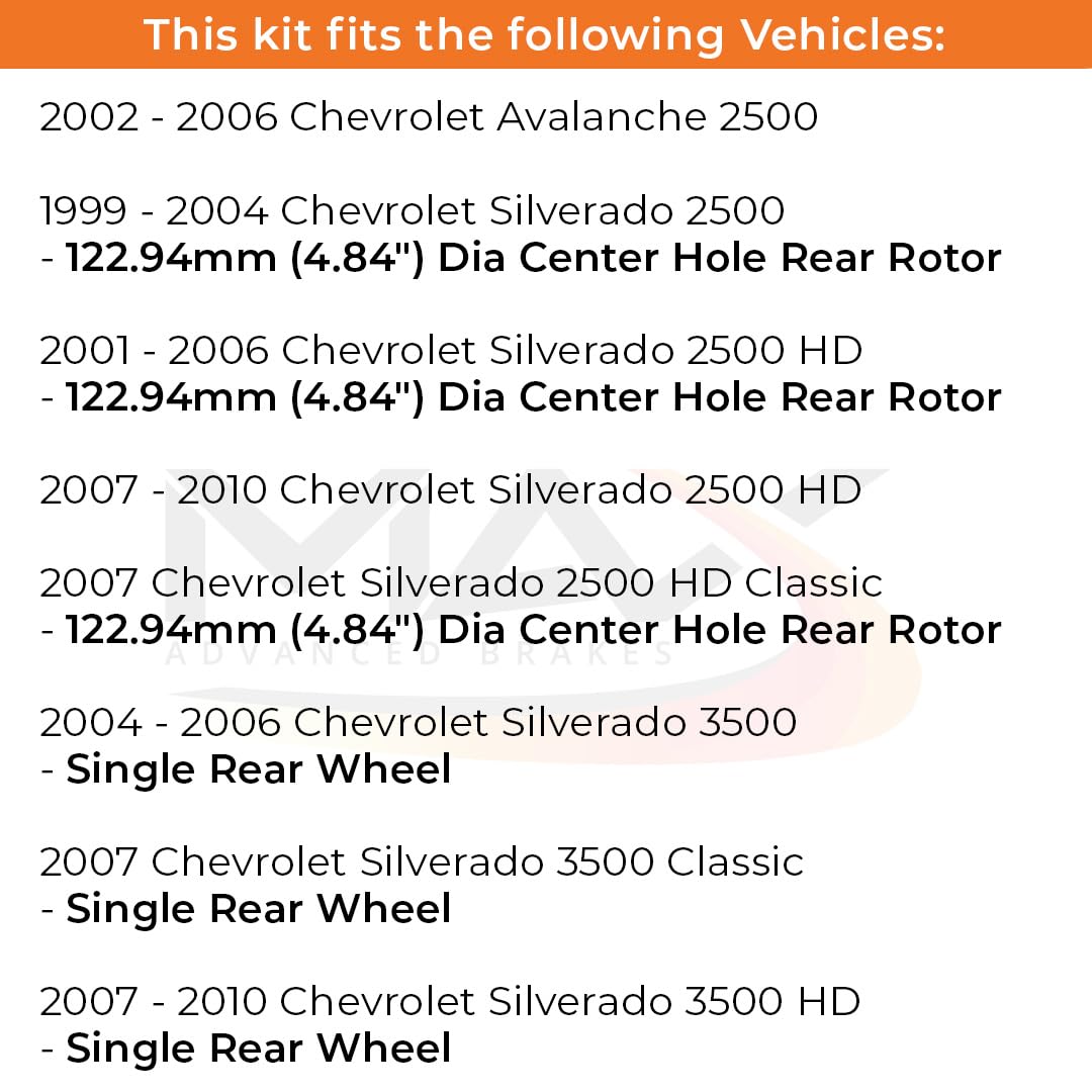 Max Advanced Brakes Rear Brake Kit Compatible With 2002-2006 Chevy Silverado Compatible With Gmc Sierra 2500 3500 Hd Replacement