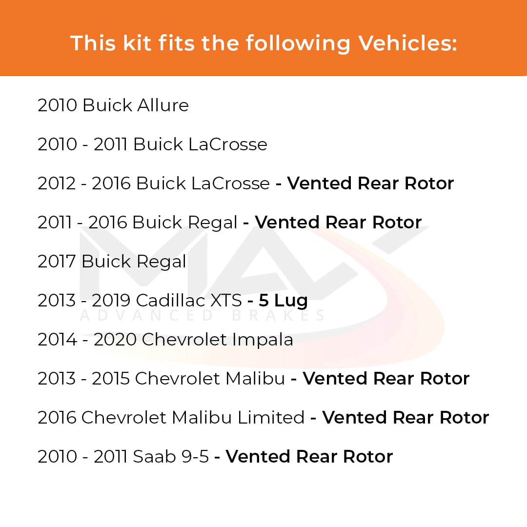 Max Advanced Brakes Rear Brake Kit Compatible With 2010-2017 Buick Allure Lacrosse Regal Compatible With Chevy Malibu Replacemen