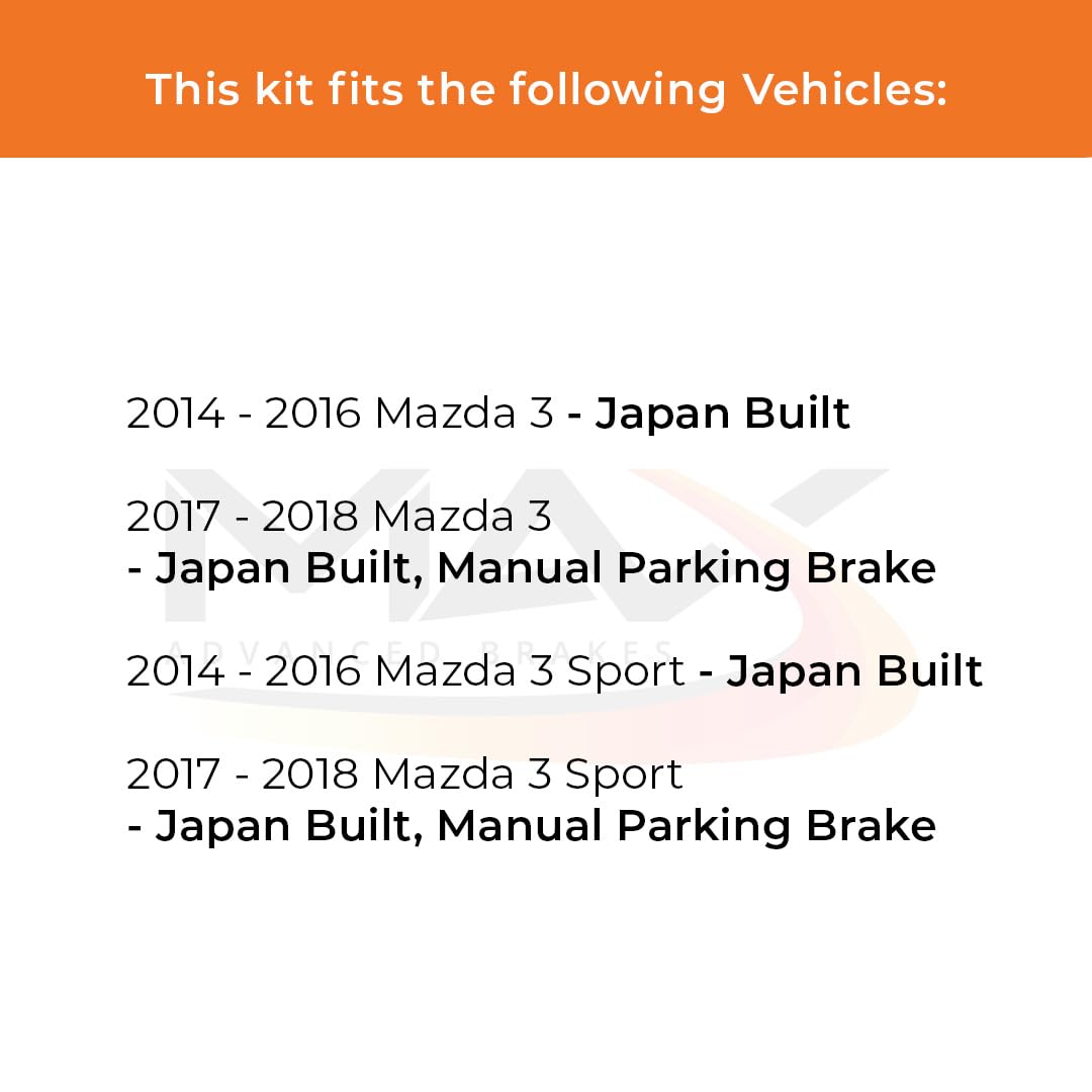 Max Advanced Brakes Rear Brake Kit Compatible With 2014 2015 2016 2017 2018 Mazda 3 Sport W/Mpb Japan Built Replacement Geomet C