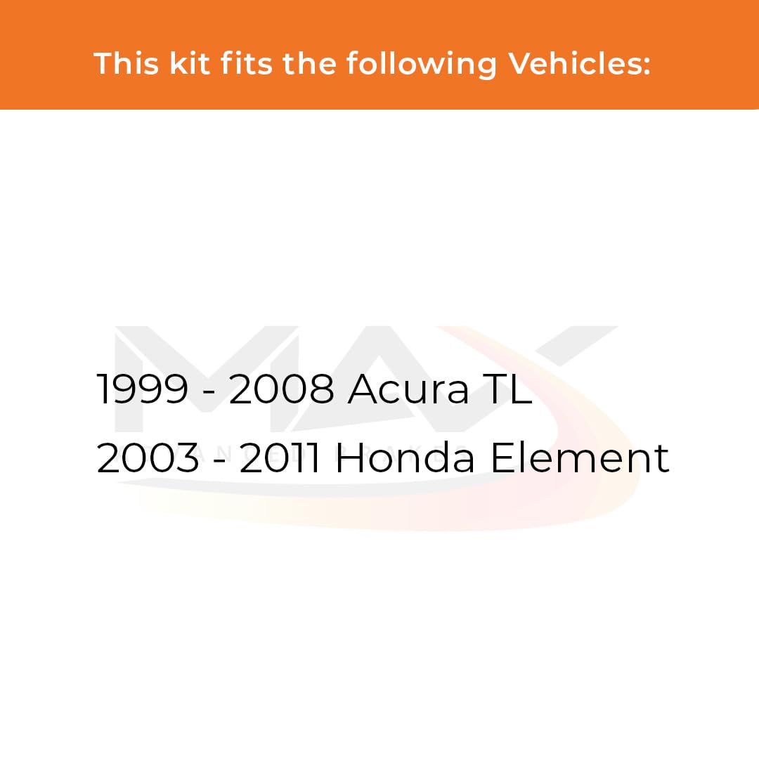 Q: What vehicles are compatible with the Max Advanced Brakes Rear Brake Kit?A: The Max Advanced Brakes Rear Brake Kit is specifically designed for the 1999-2008 Acura TL and the 2003-2011 Honda Element. To ensure the best fitment, please verify your vehicle's Year, Model, Sub-Model, Engine Size, and other specifications before purchasing.