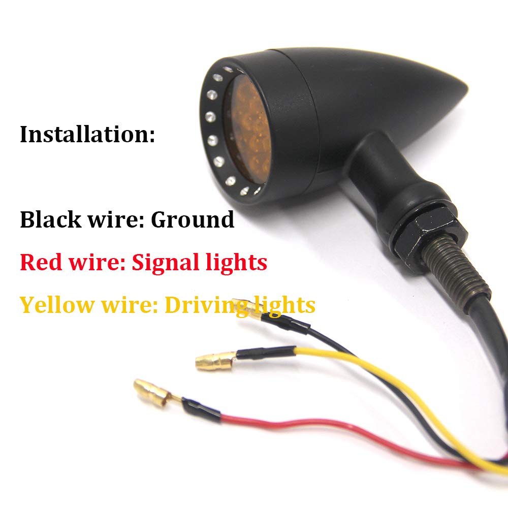Q: How do I install the LED turn signal lights?A: Installation is straightforward: connect the black wire for ground, the red wire for signal lights, and use the third wire for driving lights. The lights can be installed on both the front and rear of your motorcycle without any modifications.