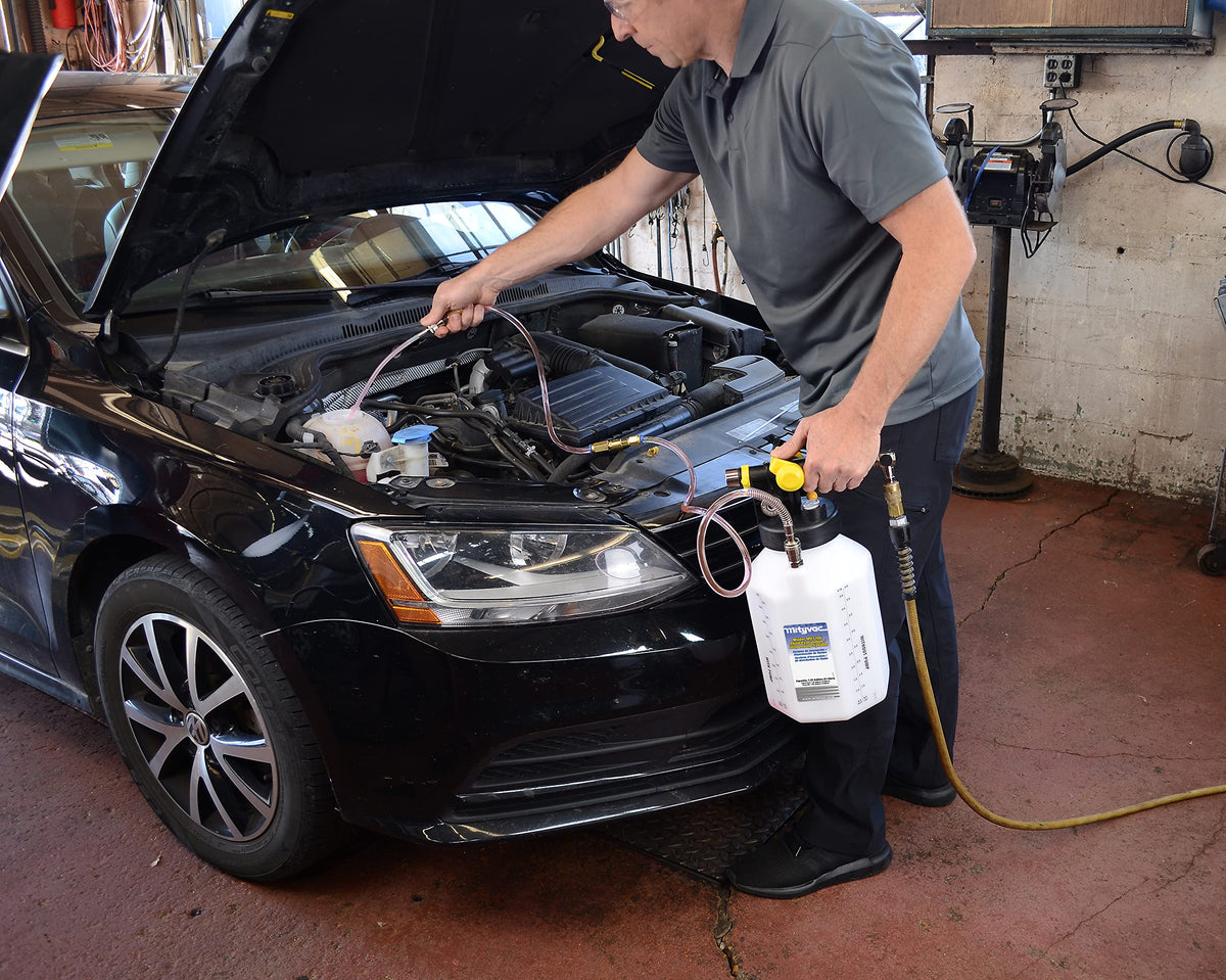 Q: How does the Mityvac MV7110 operate for fluid extraction and dispensing?A: The Mityvac MV7110 operates using compressed shop air, generating up to 120 psi. By manipulating a slide valve and throttle, users can easily switch between vacuum for fluid extraction and positive pressure for dispensing. This simplifies the process of evacuating, topping off, and refilling reservoirs.