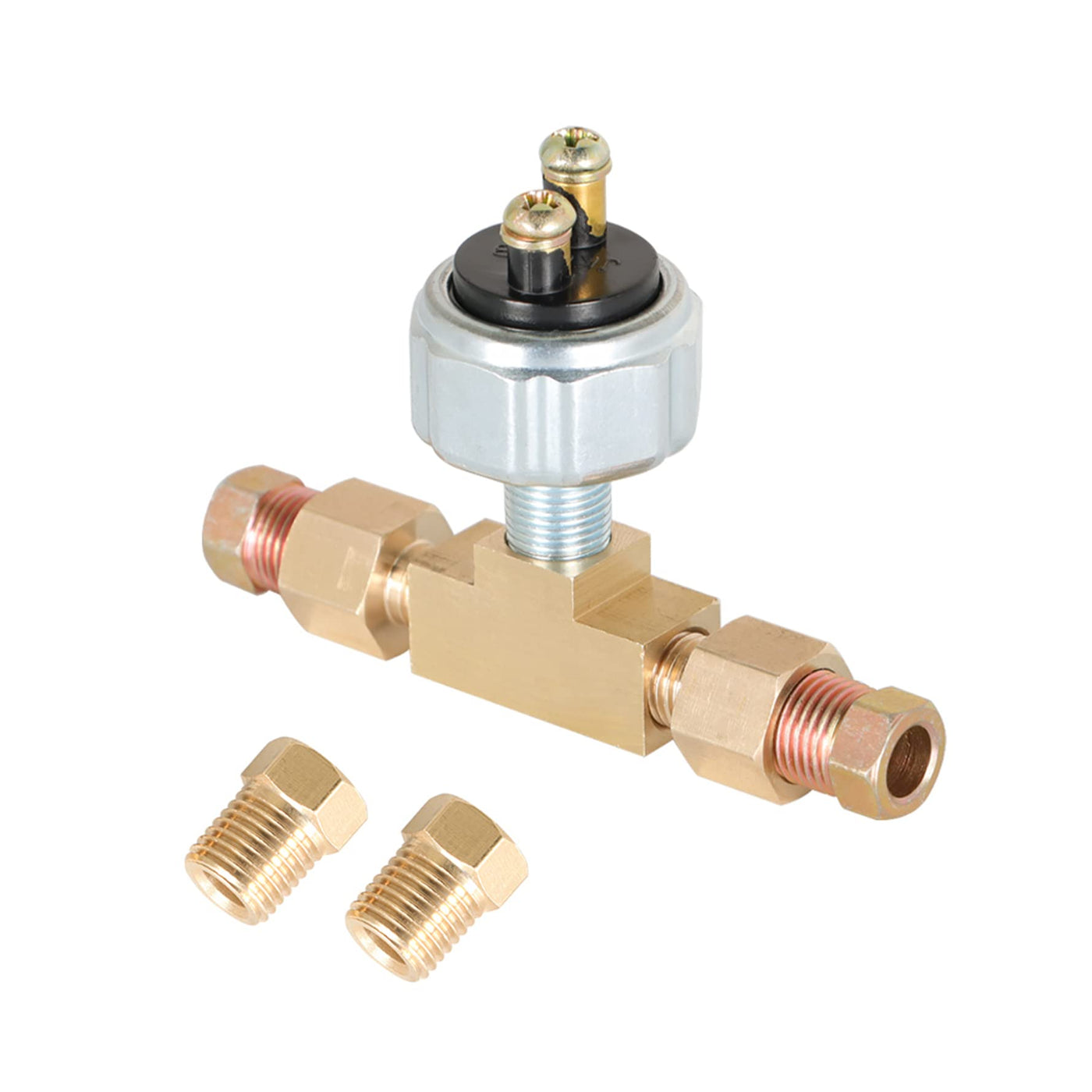Universal Hydraulic Brake Light Switch in Line Brake Light Switch Replacement for:This is a universal in line hydraulic brake light switch kit, it suitable for 3/16 or 1/4 inch lines, high performance, strong reliabilityPack Include:2-3/8 Tube nuts2-1/4 Inch tube nuts2-3/16-1/4 Inch adapters1-Brass block1-Brake light switchSpecification:Item Type: Hydraulic Brake Light Switch KitMaterial: Aluminum + Plastic