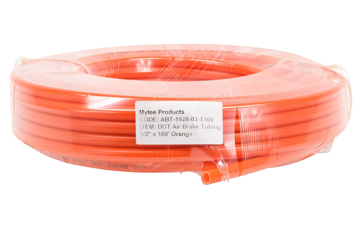 Pack Size: 2 Pack SIZE: SAE J844 Air Brake Tubing 1/4'' x 100' Orange Trailer Nylon Line Hose DOT Approved. (Nominal O.D.: ¼”, Nominal Wall: 0.040'') DURABLE: Our DOT Air Brake Tubing can be used safely in temperatures as low as -40° F up to 200° F (that’s -40? to over 93?). RESISTANT: Resistant to exposure to UV rays, gasoline, cleaning chemicals, diesel fuel, and road debris. NOT MADE FOR FUEL. SAFETY: For use with compression fittings, designed to operate at up to 150 PSI in airbrake systems. Mytee Air Brake Tubing is cold weather flexibility and resistant to most abrasion. VARIETY: This Air Brake Tubing is 100-feet long. It comes in a variety of colors as well. DOT COMPLIANT: Meets or exceeds SAEJ844 (Type A- non-reinforced). Air Brake Tubing identified per SAE J844 & FMVSS No. 106 Brake Hoses, 49 CFR 571.106. (NOTE: SAE does not recognize 1/8”, 5/32” or 3/16” O.D. tubing for use with air brake systems)