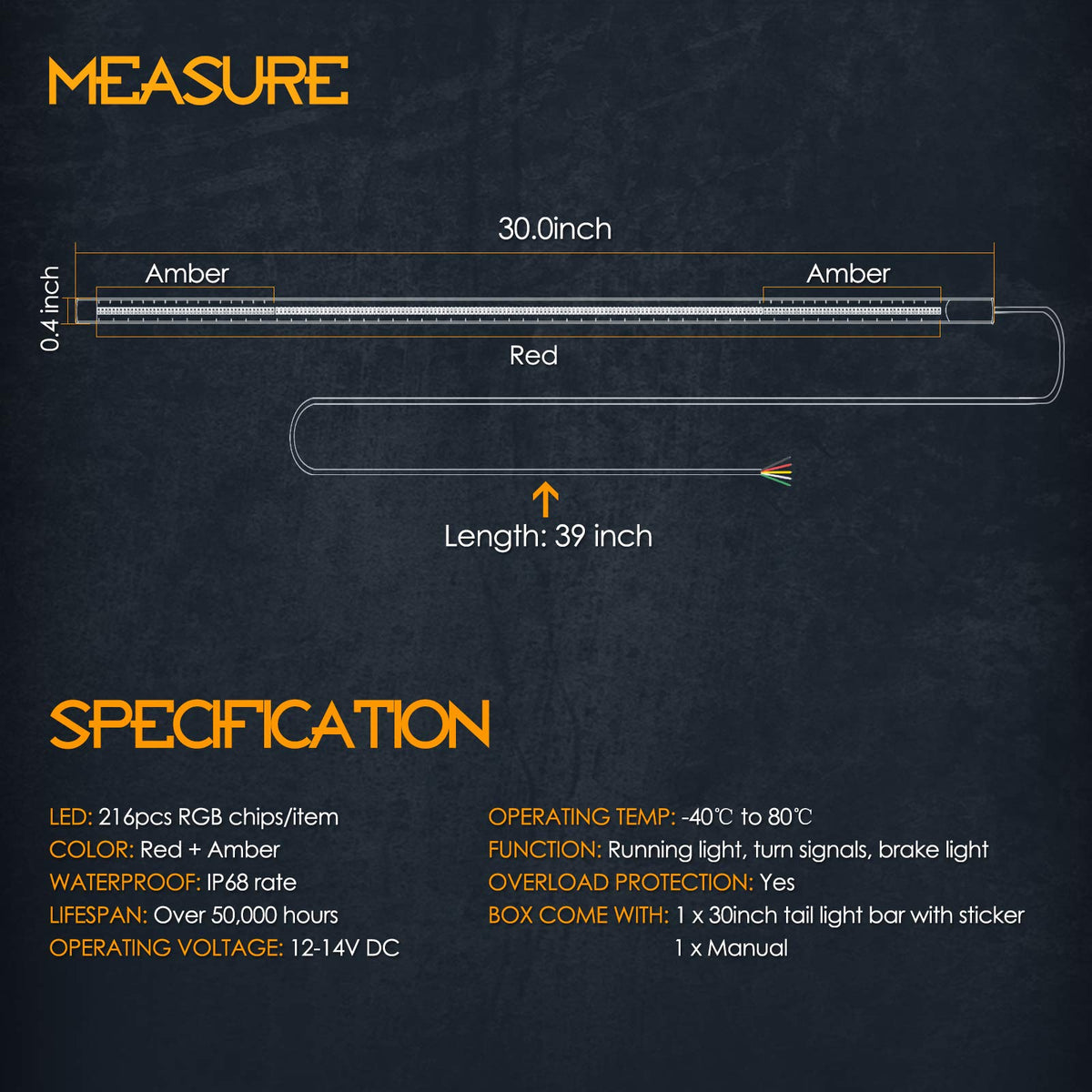 Nirider Led Lights And Accessories Are Designed And Built To Be Tough, Built To Last And Built With The Absolute Commitment To Quality. Our Mission Is To Design Premium Unique Products That Illuminate Lifes Adventures. Features With Turn / Brake / Running Lights Universal Fit, Easy To Install Bigger Led Chips With Flood Beam Design Specification Power: 42W Color: Red + Amber Led: 216Pcs Led Chips/Item Waterproof: Ip68 Rate Lifespan: Over 50,000 Hours Operating Voltage: 12-14V Dc Operating Temp: -40? To 80? Overload Protection: Yes Over Temperature Protection: Yes Quality Assurance: 12 Months Applications This Universal And Slim Led Tail Light Can Be Installed On Your Vehicle No Matter What Make And Model You Drive. Such As Atv, Utv, Pickups, 4 Wheeler, Car, Chevy, Gmc, Dodge Ram And All Your Favorite Off-Roading Vehicles.