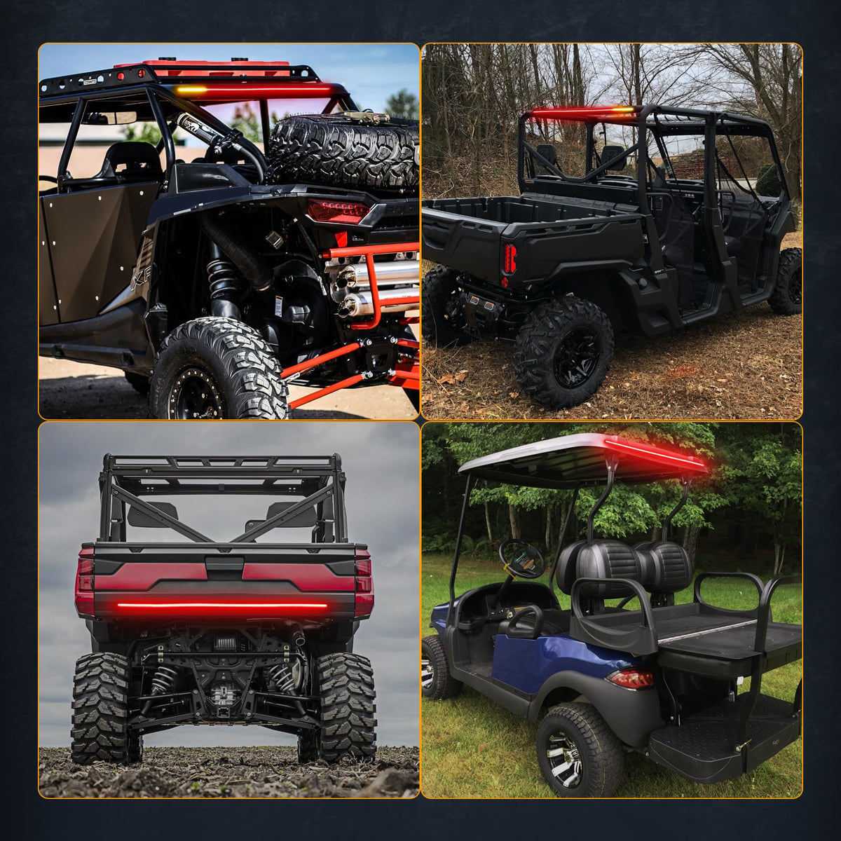 Q: What vehicles are compatible with the Nirider UTV Tail Light Strip?A: The Nirider UTV Tail Light Strip is universally compatible and can be installed on a wide range of vehicles including UTVs, ATVs, pickups, SUVs, and trucks. It fits all 12V vehicles such as Polaris RZR, Kawasaki Mule, Can-Am, Yamaha, and more.