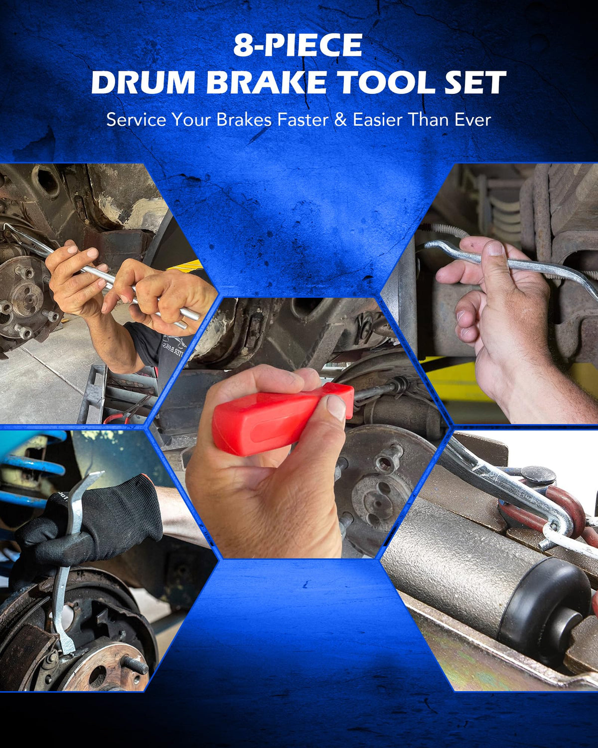 Are Your Drum Brakes Starting To Clatter Or Shake Your Brake Pedal? It 'S High Time For You To Fix Your Worn Drum Brakes And, If You Want To Do It Yourself, Orion Motor Tech Has Got The Drum Brake Tool Kit You Need To Get The Job Done. This 8-Piece Drum Brake Tool Lets Professional Or Amateur Mechanics Remove And Replace Drum Brake Return Springs, Check Their Brake Pads, And Inspect And Adjust Other Parts Of The System On Most Foreign And Domestic Cars And Trucks. This Universal Brake Drum Tool Kit Is Constructed From Structural-Grade 45# Steel For Superior Strength And Durability, With Its Parts Either Blackened Or Chromate-Coated To Offer Outstanding Wear And Corrosion Resistance. The Custom Blow-Molded Case Keeps Everything Organized And Easy To Store Or Carry Between Jobs. Get Your Brakes Done Right With This Economical But Precision Engineered Kit From Orion Motor Tech!