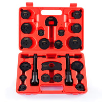 Q: How do I use the brake caliper compression tool in this kit?A: To use the brake caliper compression tool, attach the appropriate plate to the handle, select the disc adapter that fits your vehicle, and simply turn the handle to rotate the pistons back into their calipers, making room for new brake pads.