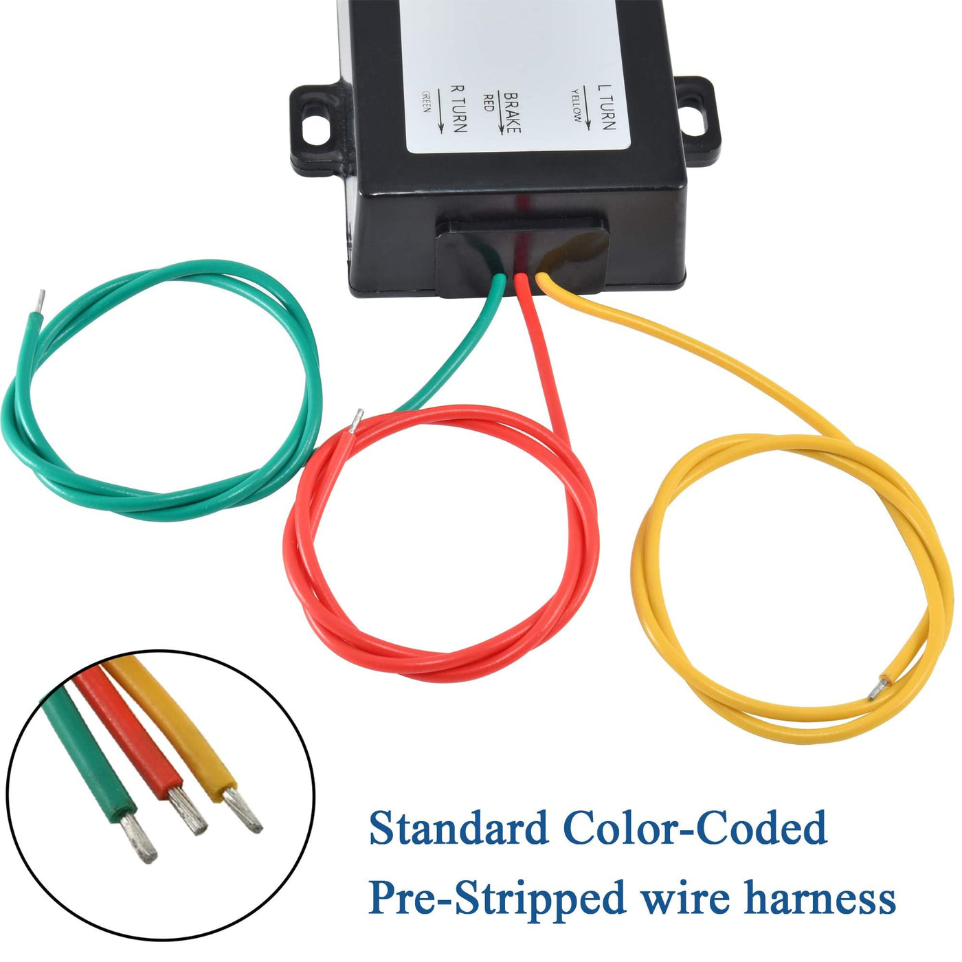 Featuring standard color-coded and pre-stripped wires, the installation process is straightforward and user-friendly. The functions are clearly labeled on the RV Trailer 2 Wire to 3 Wire Taillight Converter to assist with simultaneous installation.
