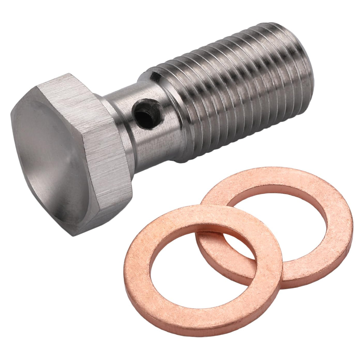 Specifications: Material: 304 Stainless Steel Size: M10X1.0 Metric Stainless Steel Single Banjo Bolt, Length: 24Mm (Excluding Hex Head). Comes With 2 Copper Washers Features: - These Adapters Work Well To Adapt Master Cylinders, Wheel Cylinders, Calipers, And Other Brake & Clutch Components To Flex Hoses - Compatible With Fuel, Oil, Brake Fluids, Unleaded Petrol, Methanol & Water - All Podavelle Fittings And Adapters Are Precision Cnc Machined To The Highest Standard For A Durable, Tight, Secure And Leak Free Connection Notice: Professional Installation Is Highly Recommended! (No Instructions Included)