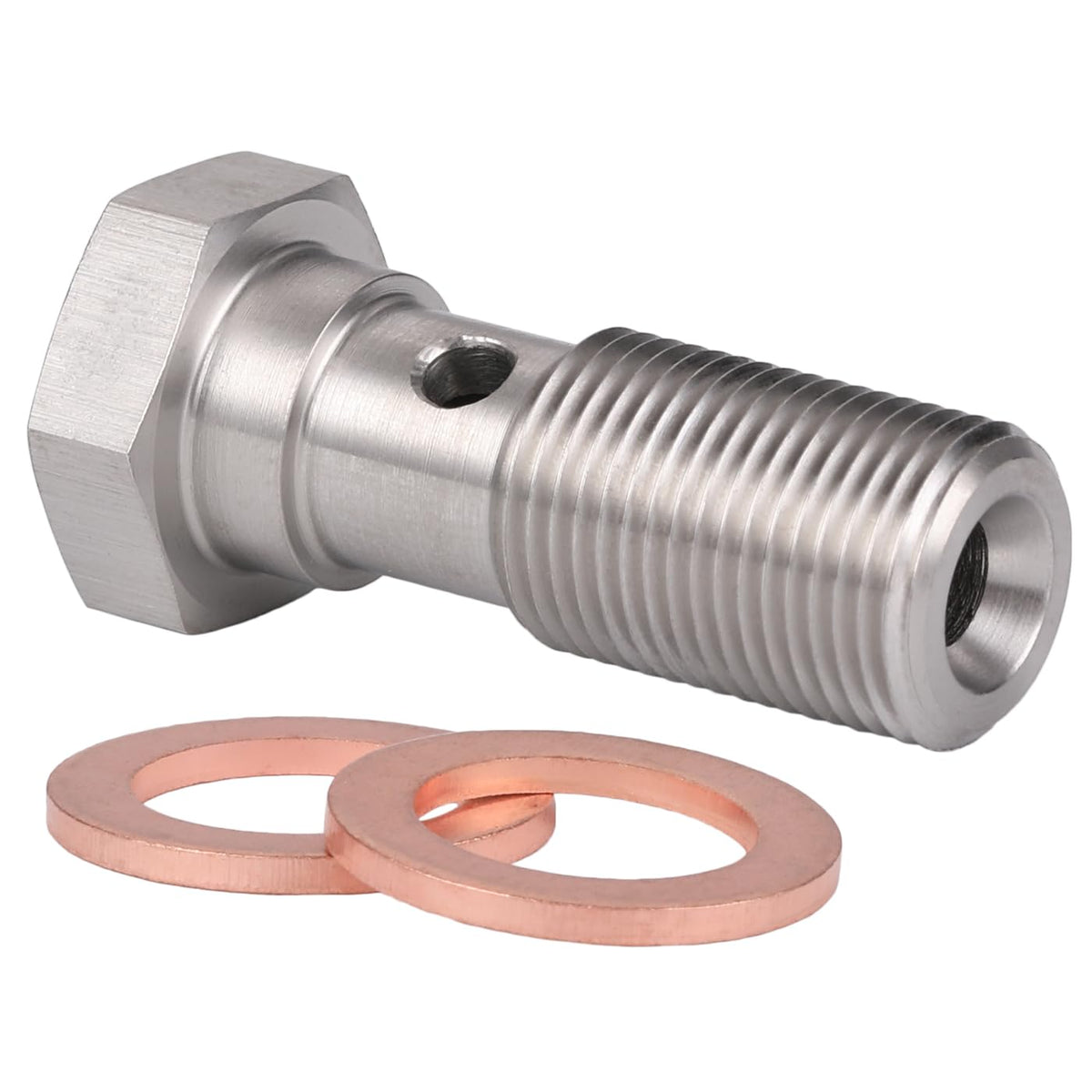 Specifications: Material: 304 Stainless Steel Size: M12X1.0 Metric Stainless Steel Banjo Bolt, 31Mm Long (Excluding Hex Head). Comes With 2 Copper Washers Features: - These Adapters Work Well To Adapt Master Cylinders, Wheel Cylinders, Calipers, And Other Brake & Clutch Components To Flex Hoses - Compatible With Fuel, Oil, Brake Fluids, Unleaded Petrol, Methanol & Water - All Podavelle Fittings And Adapters Are Precision Cnc Machined To The Highest Standard For A Durable, Tight, Secure And Leak Free Connection Notice: Professional Installation Is Highly Recommended! (No Instructions Included)