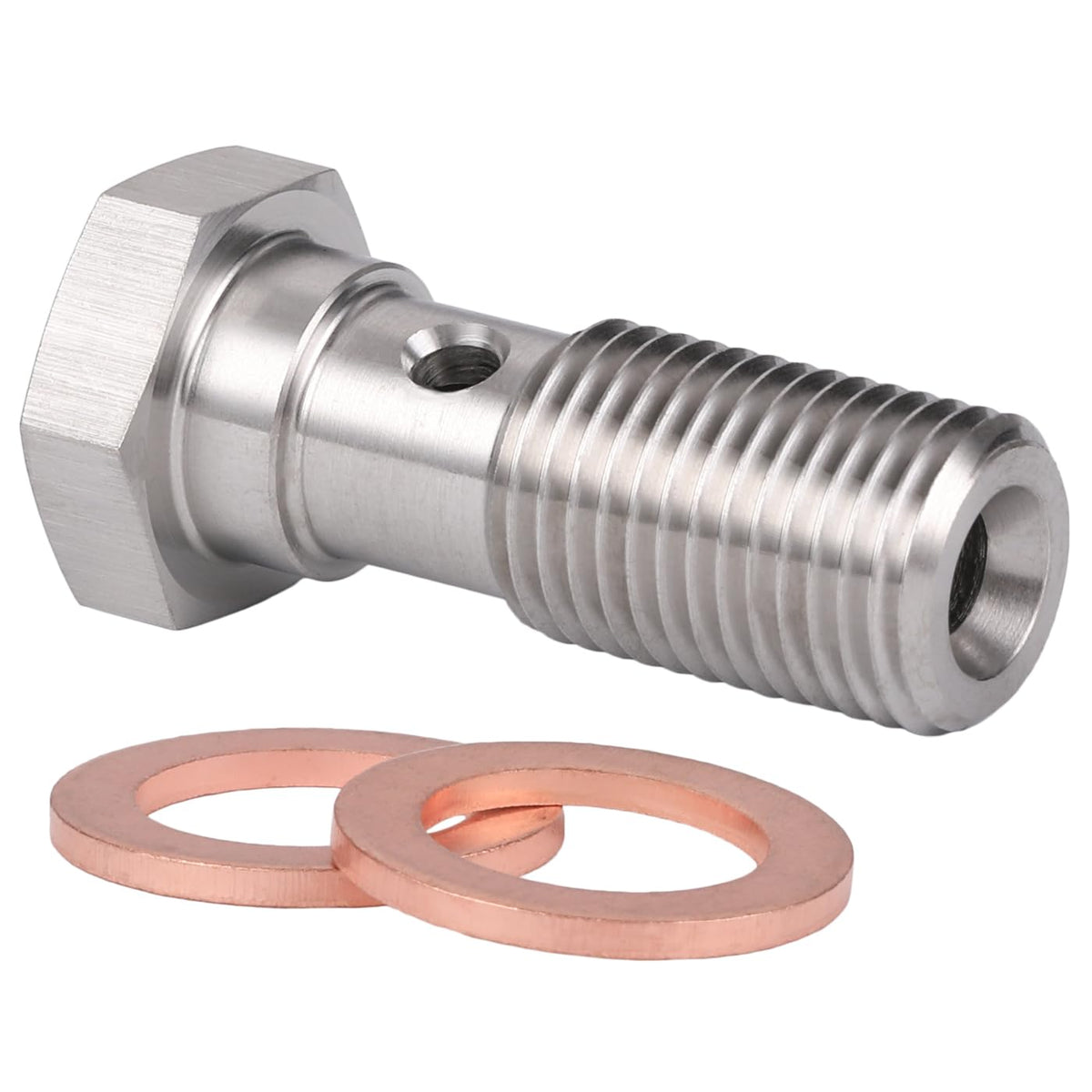 Specifications: Material: 304 Stainless Steel Size: M12X1.25 Metric Stainless Steel Banjo Bolt, 31Mm Long (Excluding Hex Head). Comes With 2 Copper Washers Features: - These Adapters Work Well To Adapt Master Cylinders, Wheel Cylinders, Calipers, And Other Brake & Clutch Components To Flex Hoses - Compatible With Fuel, Oil, Brake Fluids, Unleaded Petrol, Methanol & Water - All Podavelle Fittings And Adapters Are Precision Cnc Machined To The Highest Standard For A Durable, Tight, Secure And Leak Free Connection Notice: Professional Installation Is Highly Recommended! (No Instructions Included)