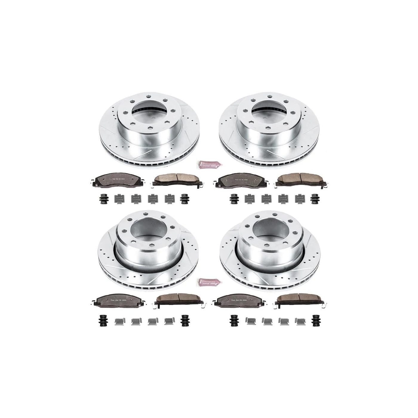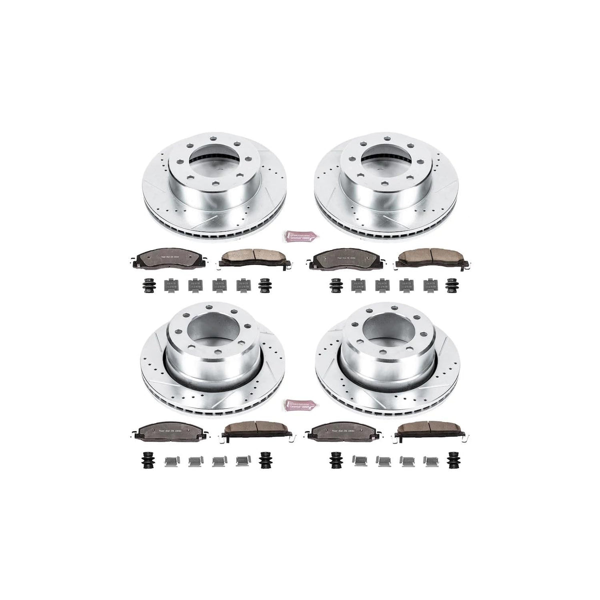 Power Stop Brake Kit Dodge Ram 1500 2500 3500 Pickup - Front and Rear Truck and Tow Carbon Fiber Ceramic Brake Pads with Drilled