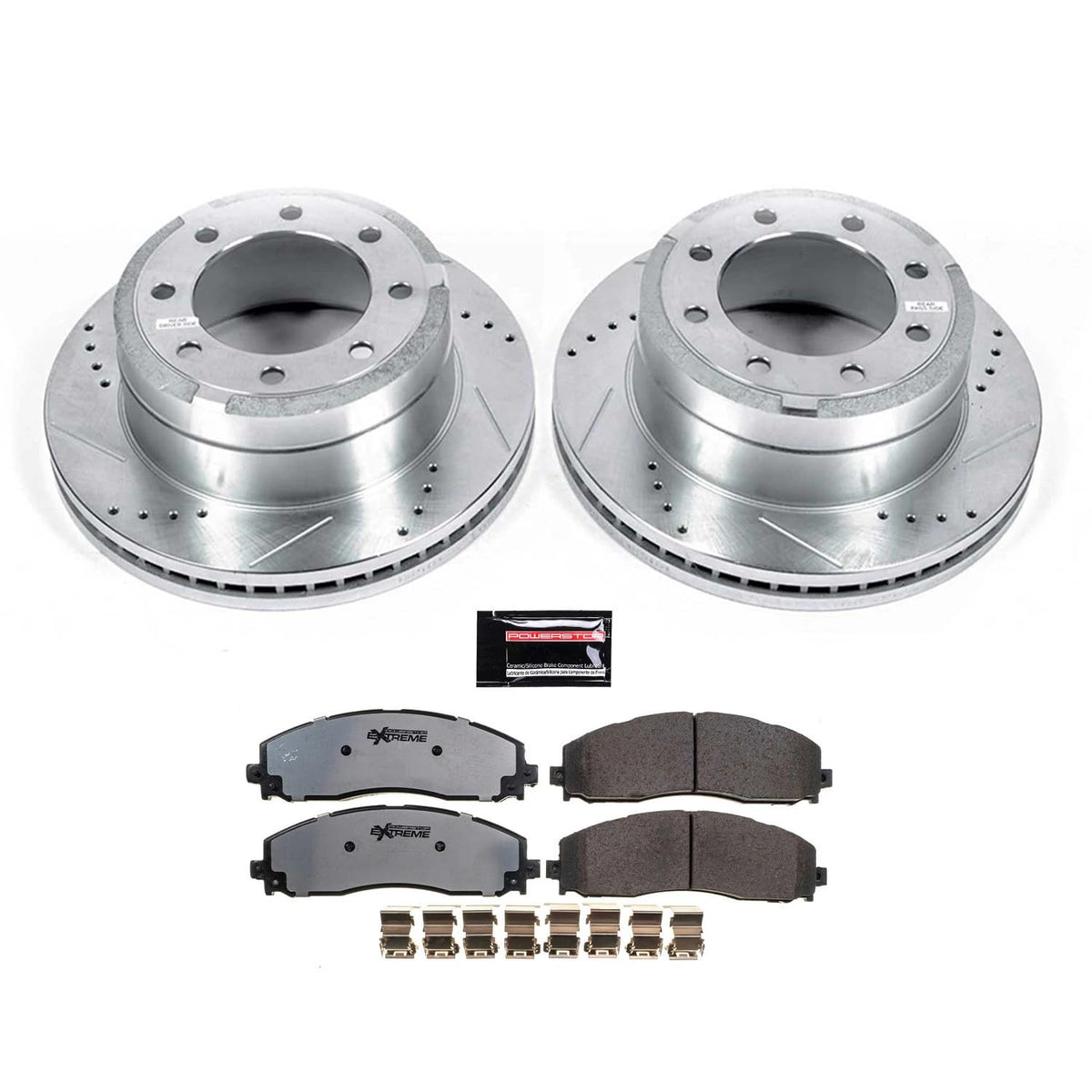 PowerStop is on a mission to deliver an easy way for any driver to upgrade their brakes - no matter where or how they use their vehicle. Our Z36 Truck & Tow Brake Upgrade Kit is recommended for trucks, 4x4s, and SUVs that not only work hard, but play hard as well. This brake pad and rotor kit comes with everything you need, including premium stainless-steel hardware, for an easy, bolt-on installation. The low-dust Ceramic brake pads are reinforced with Carbon-Fiber to provide severe-duty stopping power without sacrificing everyday drivability. These pads are paired with Drilled & Slotted rotors that keep brake temperatures down by maximizing heat dissipation, critical for those long mountain descents. Whether towing a boat or trailer, hauling for the jobsite, or tackling a tough off-road trail, get the easy and affordable, bolt-on performance upgrade with the Z36 Truck & Tow Brake Upgrade Kit.This kit fits:2013-2022 Ford F-250 Super Duty2012 Ford F-250 Super Duty from 10/22/20122013-2022 Ford F-350 Super Duty Single Rear Wheels